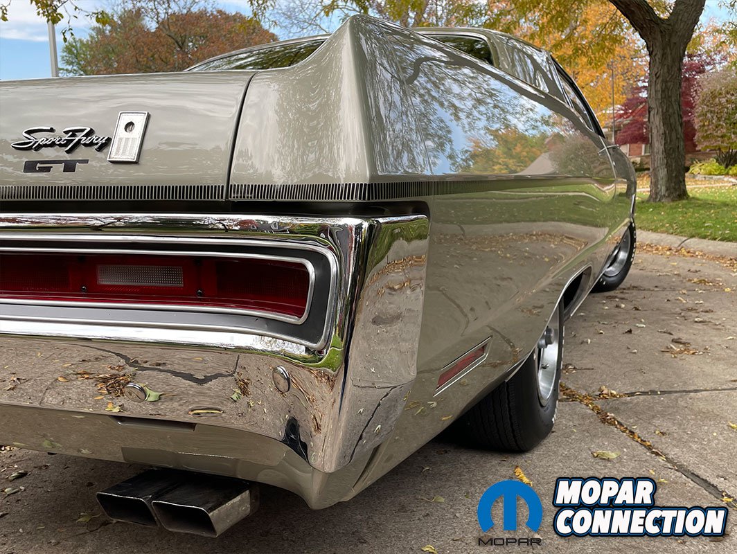 Once he had the Sport Fury home, Stan sent the car off to get painted to a showroom fresh quality at PSI Automotive in Sterling Heights, Michigan. Brand new GT strobe stripes were installed, the bumpers were re-chromed and the trim was polished to a mirror shine.
