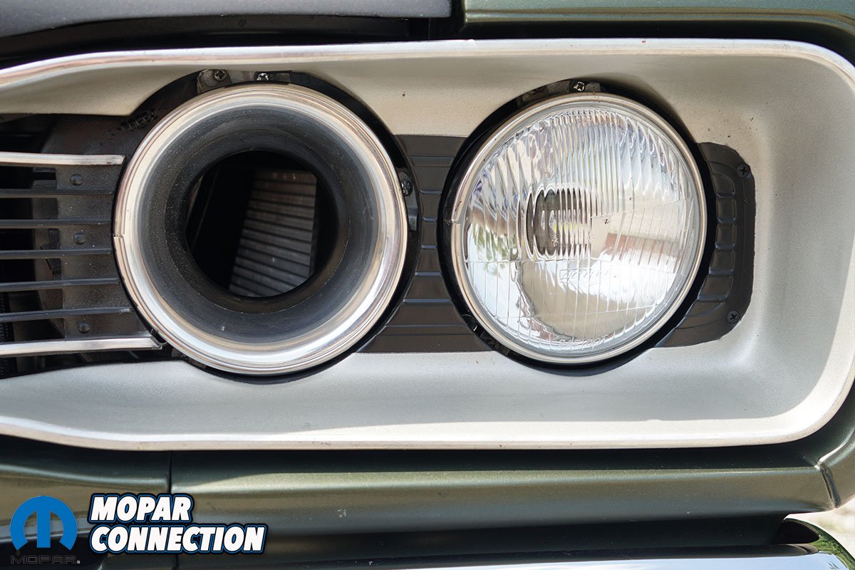 He continued to say, “We tried our best to keep the car as stock looking as possible. It’s basically how it rolled out of the factory with its F8 Green paint, two-tone green bench seat interior and white bumblebee stripe. The only difference is I’ve always wanted a ’69 ½ A12 Super Bee so I decided to install a lift off A12 hood and black 15” steel wheels on it.”