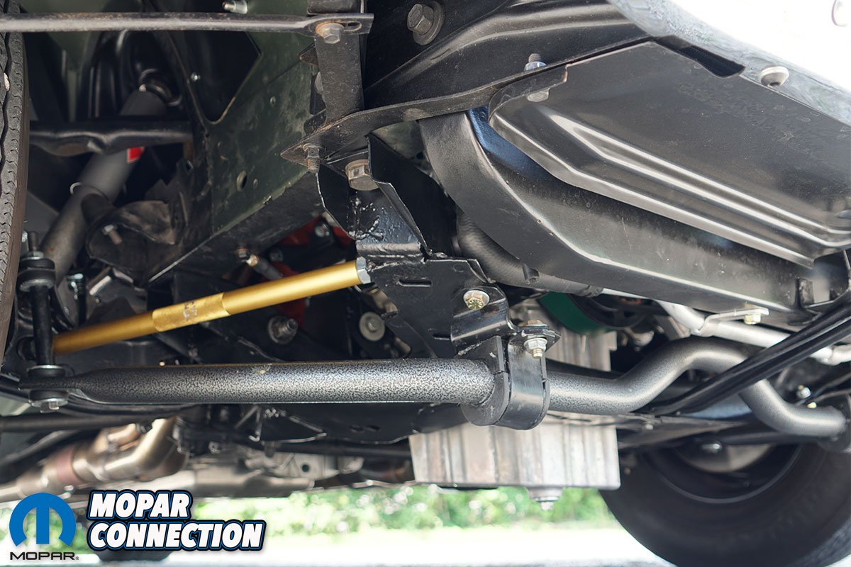 A custom driveshaft connects the modern transmission to the classic rear end and Cal-Tracs provide a little bit of extra traction support. Underneath, John and Wayne installed a full US Car Tool Level 3 chassis stiffening kit to make sure the body could handle the Hellcat power. Up front, the Super Bee has been upgraded with QA1 lower tubular control arms and dynamic strut rods.