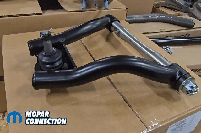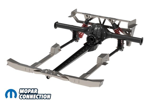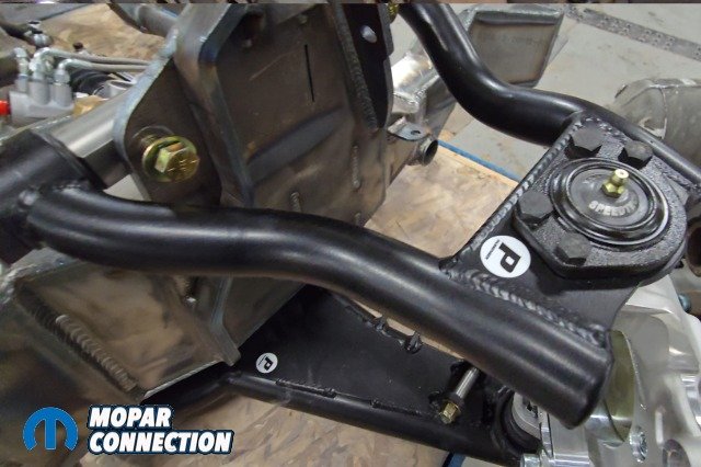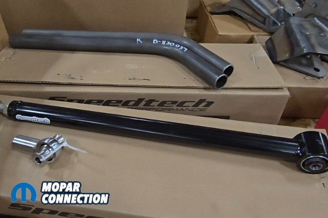Speedtech rear torque arm system Mopar platform. In the rear, the factory leaf springs are retired in favor of a three link style torque arm setup. This is designed to keep the rear axle firmly planted under power while improving ride quality and traction.