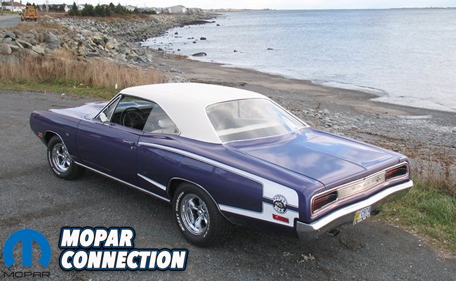 The transmission is a stock A-833 4-speed with the previously mentioned beautiful pistol grip shifter. The rear differential is a stock 8 3/4 unit fitted with 3:55 gears and a Sure Grip. Darrell Peck and Bryan’s father Donnie Durdle handled the mechanical side of things. Finishing up Bryan’s Super Bee is a set of chrome American Racing Thrust D (15×8.5 and 15×7 with 3.75 BS) wrapped in Mickey Thompson Sportsman S/T rubber (275/60/15’s on the rear and 225/70/15’s up front). Bryan extended a special thanks to his wife Shannon Durdle and their son Brady for their support during the restoration as well as Sandy, Roy and Dwyane at DSI Transmission in Dartmouth, Nova Scotia for their help figuring out a bunch of bugs with the car. He also wants to give a shout out to Robin McQueen over at Automolove.ca who designed an awesome banner of the car which proudly hangs on the wall next to it!