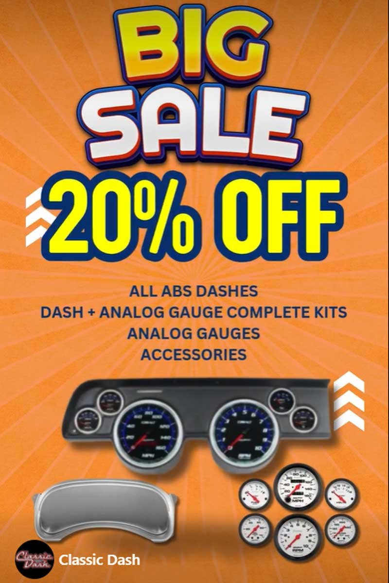 If the pieces needed for your ride are not part of the sale, Classic Dash likely still has you covered. Check out Classic Dash’s custom dash panels that meet the needs of enthusiasts’ desire for multiple finishes and gauges to fit any style.