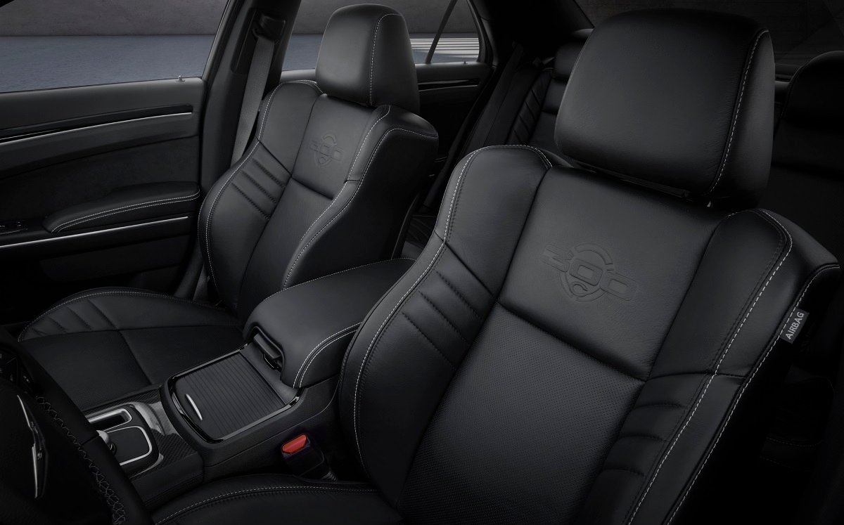 The blacked-out treatment continues on the inside of the 2023 Chrysler 300C, with Laguna leather wrapped seats that are heated and ventilated with the new 300C logo embossed on the seat backs and silver trim stitching throughout the cabin. Carbon fiber and Piano Black trim is also found on the dash and door panels, working with the black leather to give a very traditional, upscale look.