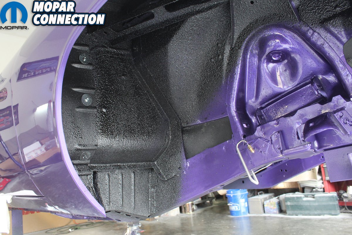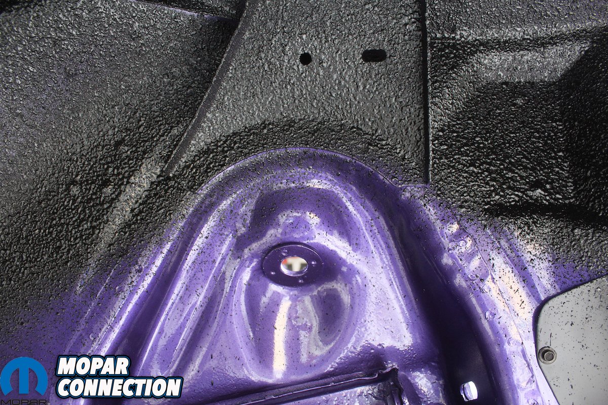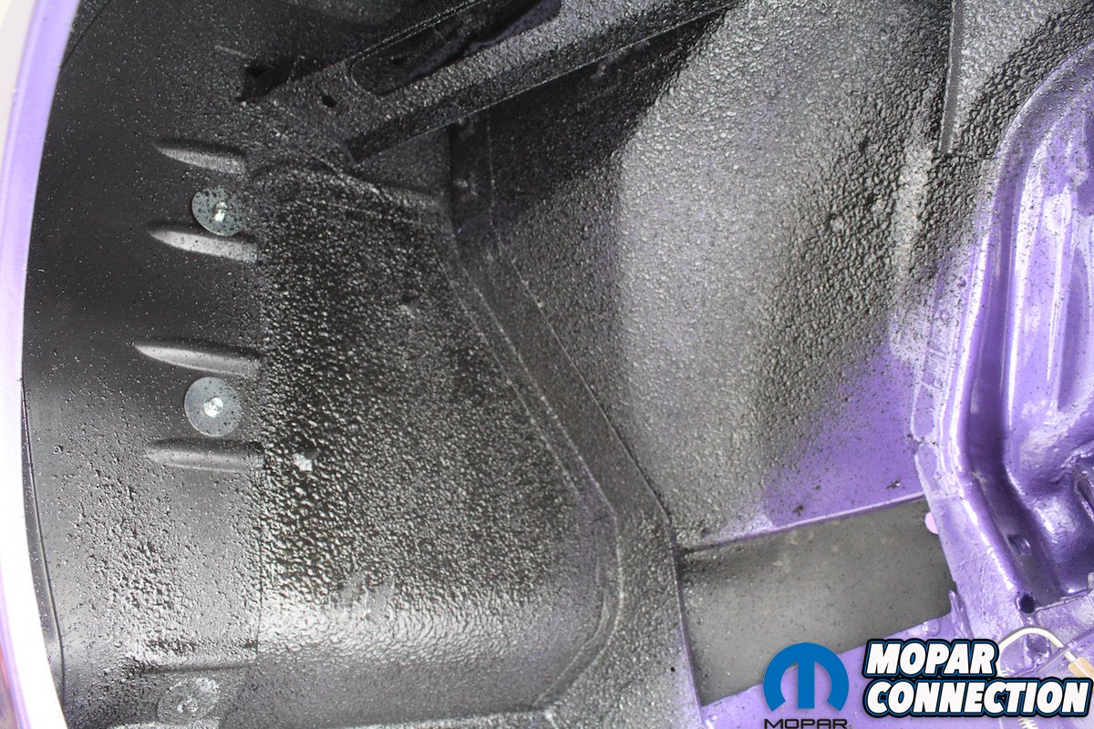 Ma Mopar applied the thick coating to not only fight the formation of rust inside the wheel wells but it also protected the underside of the fender from rocks and debris that could cause visible distortion to the tops of the front fenders. You could order your car fully undercoated and even the dealership would add this additional protection for a nice “up sell.” But every car came from the factory with wheel well undercoating.