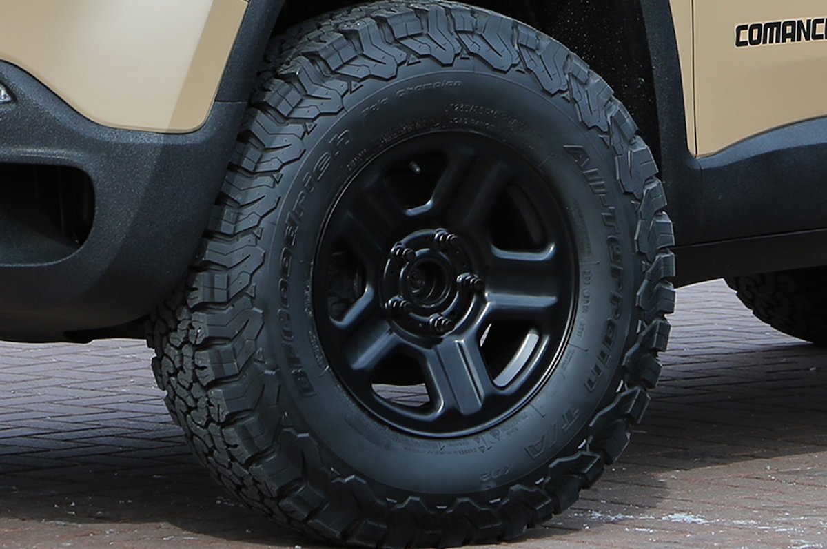 The Jeep Renegade Commander is our bet as the concept most likely to see production in the coming years. It is a mildly upgraded Renegade model featuring Jeep JK 17 inch wheels and 29-inch tires. While 29 in tires are not normally something to brag about, under the Renegade Commander’s 2-inch lift this wheel and tire combo looks excellent and makes this new concept a functional and great looking little Jeep.