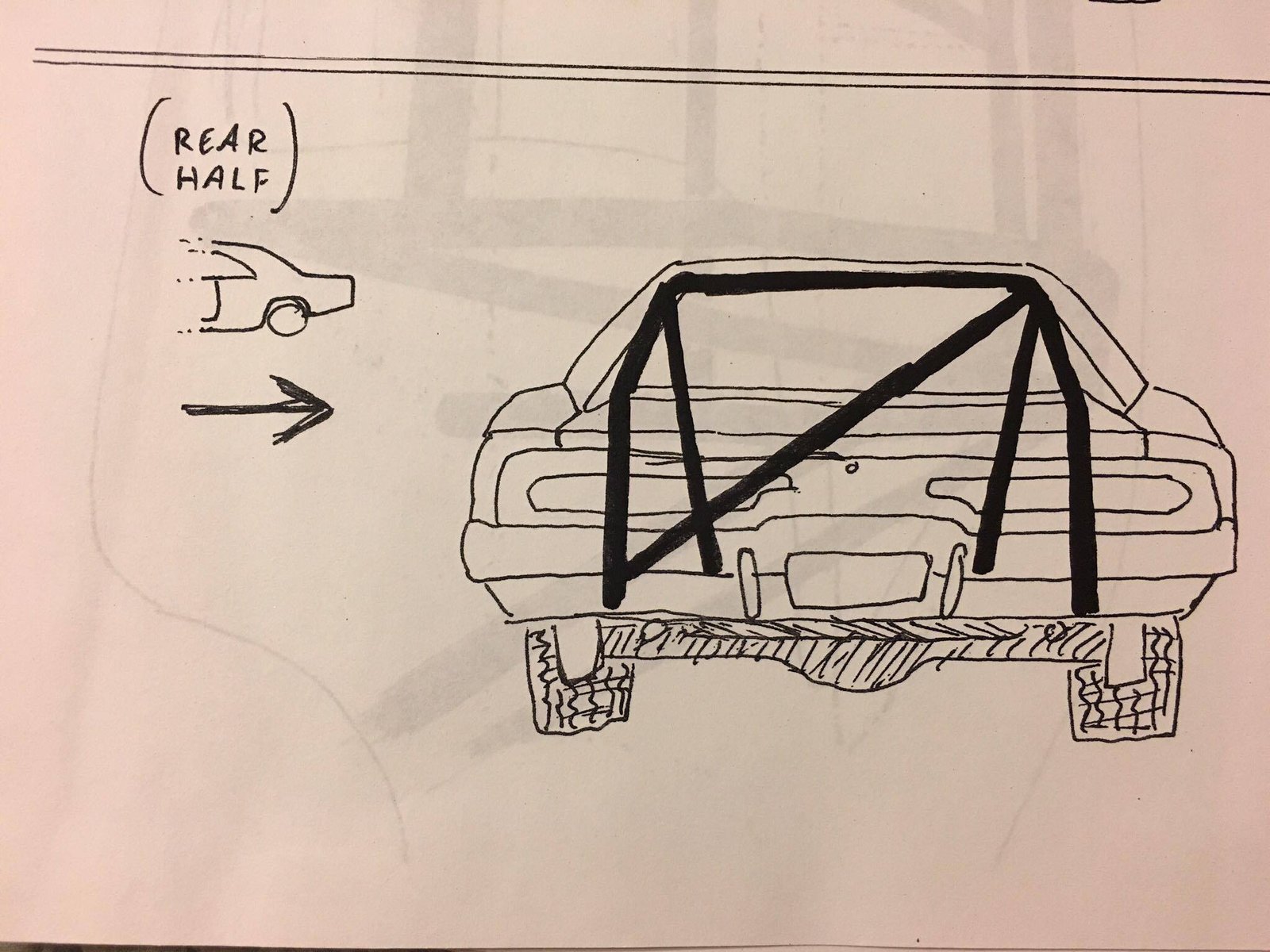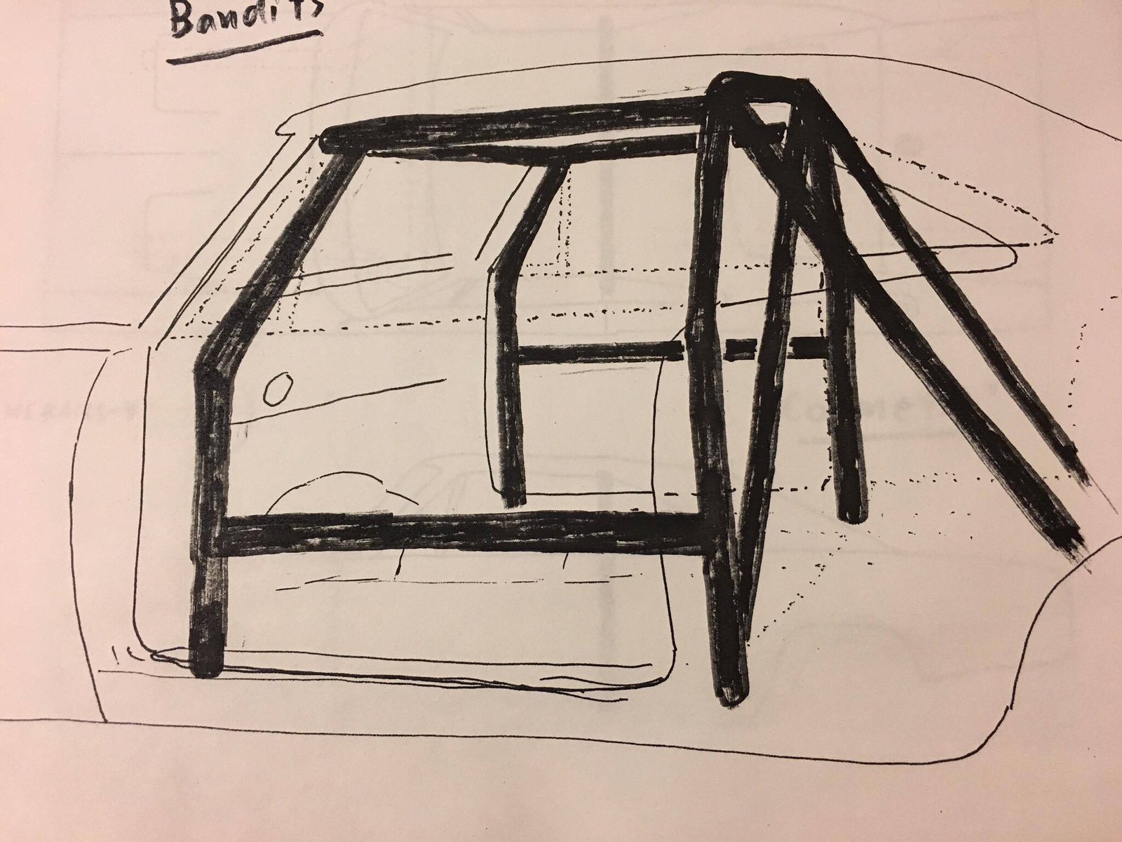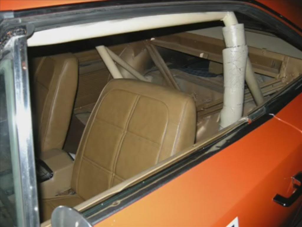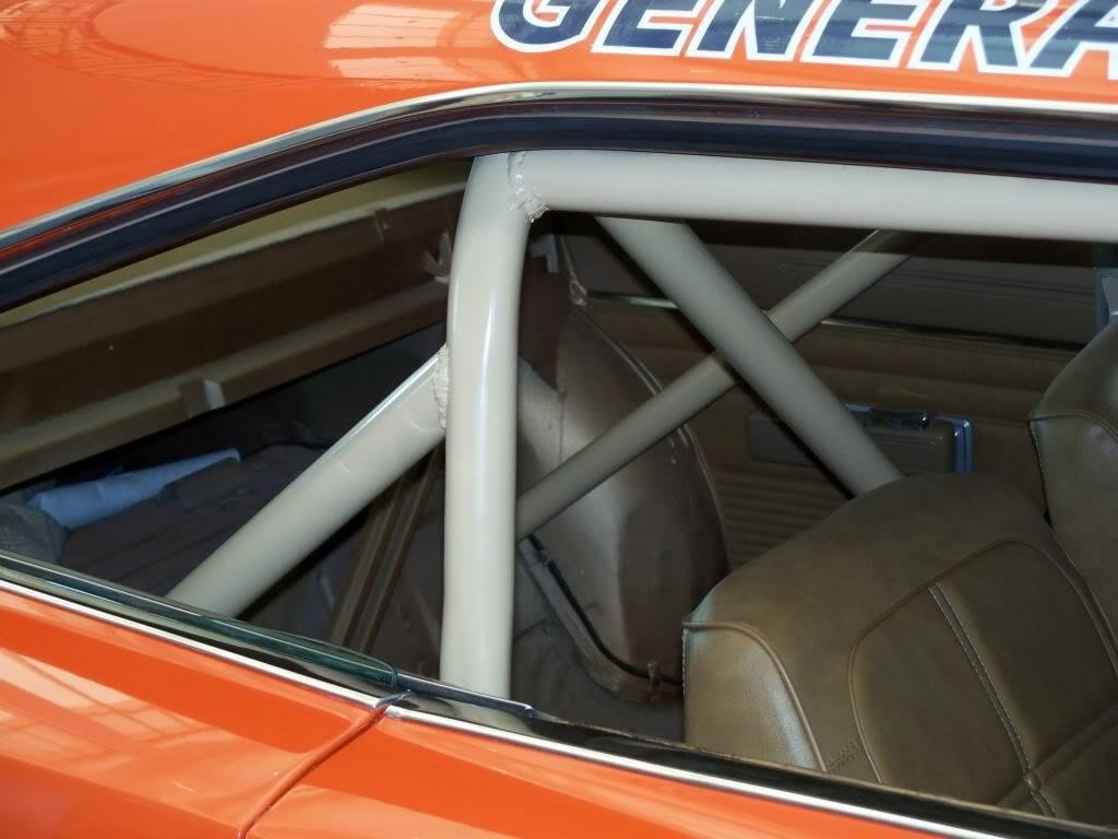 Because cars produced for later episodes retained the backseat, the cage was very different from the one built for Lee #1, often being a simple vertical head hoop, occasionally having the downward diagonal support or rear supports running through the package tray into the trunk. Having attended Dukes Fest, we can attest that the single hoop and diagonal (passenger top to driver bottom) support bar is the most common.