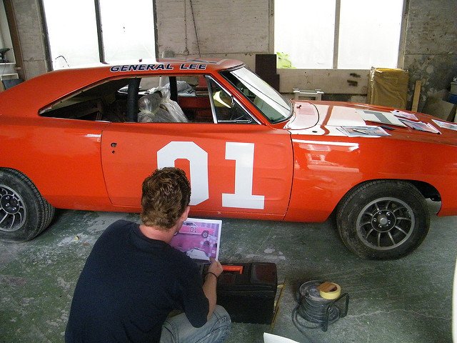 Crazy C Graphics makes what are deemed the best General Lee vinyl decals in the industry. They offer the best quality and most accurate graphics. They cover all versions of General Lee from the early Georgia days to the crudely-built later California-filmed days. For your Lee #1 replica, shoot him an email directly, as Justin says he does make a General Lee #1 specific graphic set (the “Georgia Era GL” decal set is pretty much spot on). He also sells decal sets for later California era General Lees as well as the 2005 movie edition ones. No matter what version of General Lee you are building, his decal kits are deemed the best.