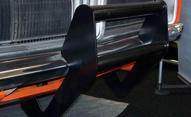 PUSH BAR: The first few original push bars including the one on Lee #1 were actually an aftermarket piece designed for a small truck. While we do not know the brand or model, we were told the crew building the cars modified them to fit the Chargers. Tabs were welded on the inside of the push bar so that it could be bolted to the front bumper using the factory bumper bolt locations on each side of the license plate.