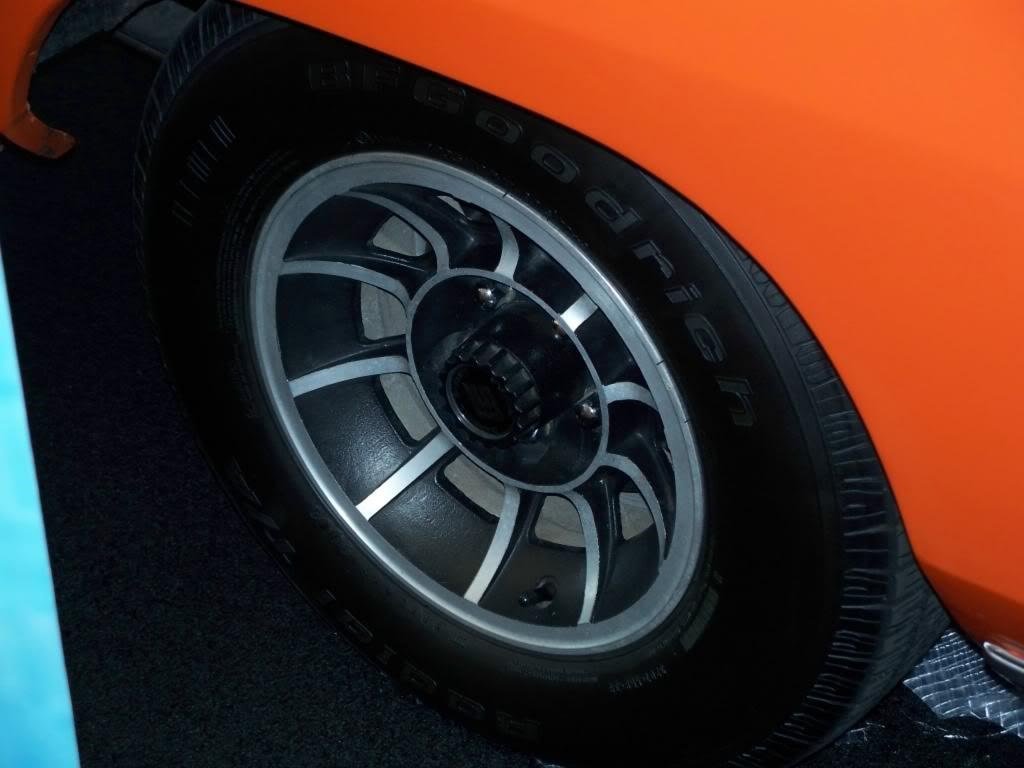 WHEELS AND TIRES: For General Lee #1, the crew at Warner Bros. used a set of 14×7 American Racing ten spoke Vector wheels with center caps that had the Carroll Shelby Racing logo on them. For the early few Georgia General Lees like Lee #1, Summit brand tires were used. We do know Lee #1 got BF Goodrich Radial T/As (black wall side out) during the restoration which looks close while maintaining total driveability and reliability. General Lees on the show never had the white letters facing out. For tire size, they varied all over the map as the vehicle maintenance crew threw whatever tires they had available on. Your best bet is to run something like a P235/70R14.