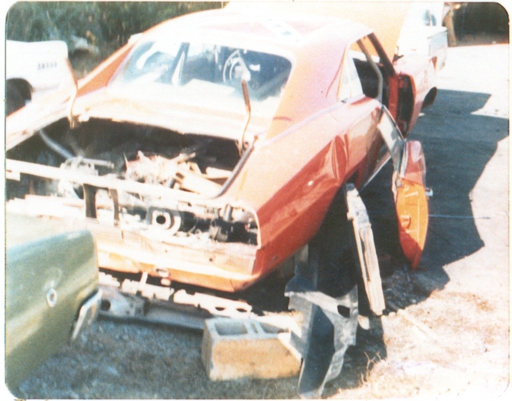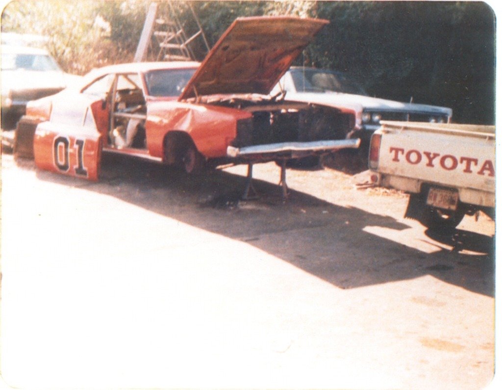In 2000, after receiving a tip, some “Dukes of Hazzard” fans found Lee #1 in the junkyard along with the first two police cars made for the show (labelled Police 1 and Police 2), a parts ’68 Charger and the blue Fury that was blown up in the episode “Mary Kaye’s Baby.” While most of the cars from the show were scrapped between 1986 and 1987, it’s a miracle these few survived. Many say what saved Lee #1 was the concrete in the trunk from the jump as concrete couldn’t be put into the crusher. The car was purchased from the junkyard by the two fans that found it: Travis Bell and Gary Schneider. They eventually sold the car to a group of three to four gentlemen in Ohio.