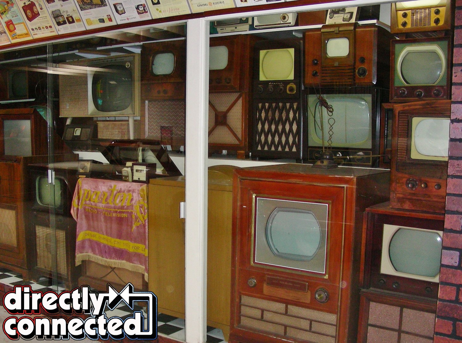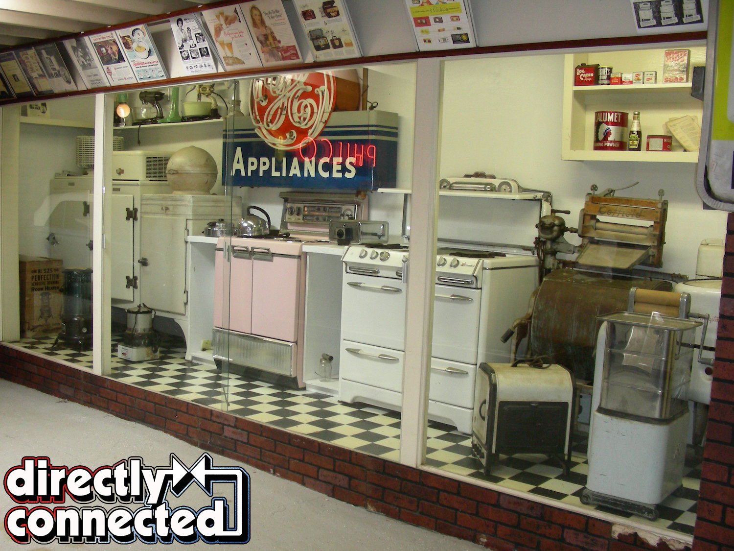 Above left: Kitchen appliances galore from several decades can be seen in this display. Above center: Table and cathedral radios in this display are a small sampling of the kind that were commonly found in American homes in an earlier era. Above right: Wall to wall display of television sets. Notice how small the screens are in stark comparison to the big screens we take for granted today. Also, for many years, a television was considered a piece of furniture, and had a prominent place in the living room or parlor.