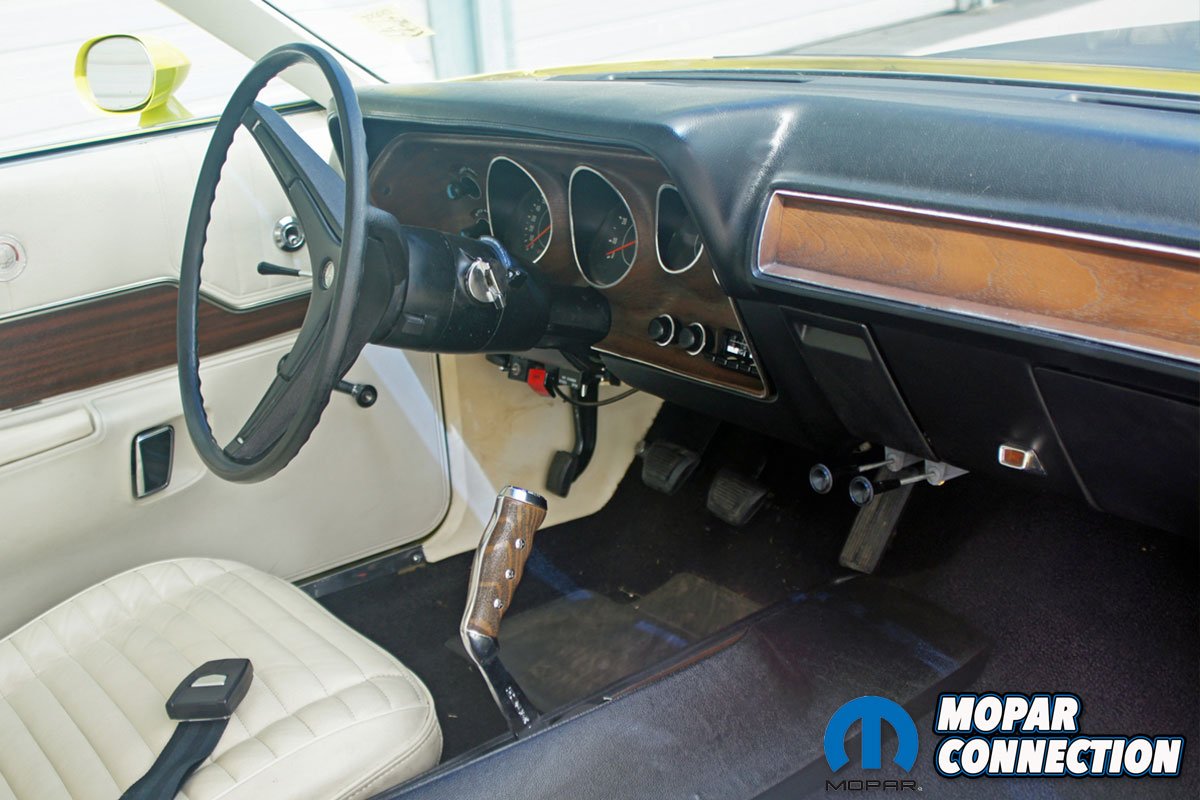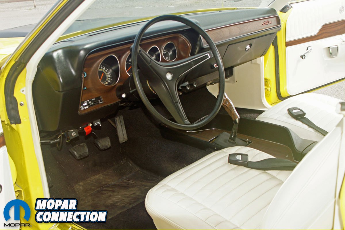 After almost two decades of Colorado weather, the aged exterior of the GTX received a rejuvenating in the late-1980s. The rust-free body got a fresh coat of factory Plymouth color Curious Yellow (GY3). New old stock (NOS) stripes and emblems were installed over the fresh paint, and to round out the exterior update, a NOS vinyl top was glued to the roof area of the GTX.