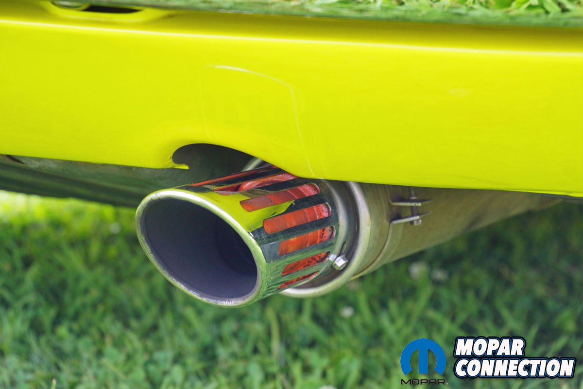 With nothing more than a gasket port match, the cylinder heads remain in a stock condition. The intake and exhaust valves remain the original size, and factory 1.5:1 rocker arms actuate them. The camshaft is an unlisted hydraulic grind with a 0.535-inch intake valve lift and a 0.520-inch exhaust lift. The advertised intake duration is 291° (230° @ 0.050”), and the exhaust duration is 295° (235° @ 0.050”). The heads dump the spent hydrocarbons into factory exhaust manifolds. A custom 2.5-inch exhaust attaches the exhaust manifolds to the factory resonators and slotted exhaust tips.