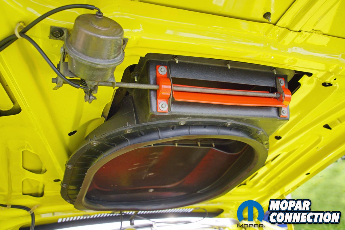 In 1971, the Hemi production was extremely low, so many of the AFBs were holdover 1970 “L” stamped carbs re-stamped by the factory with an “M” to represent the 1971 model year. To correct the rest of the induction system, Macdonald mounted the twin Carters onto a factory 1971 intake manifold and covered the carbs with a factory air cleaner housing.