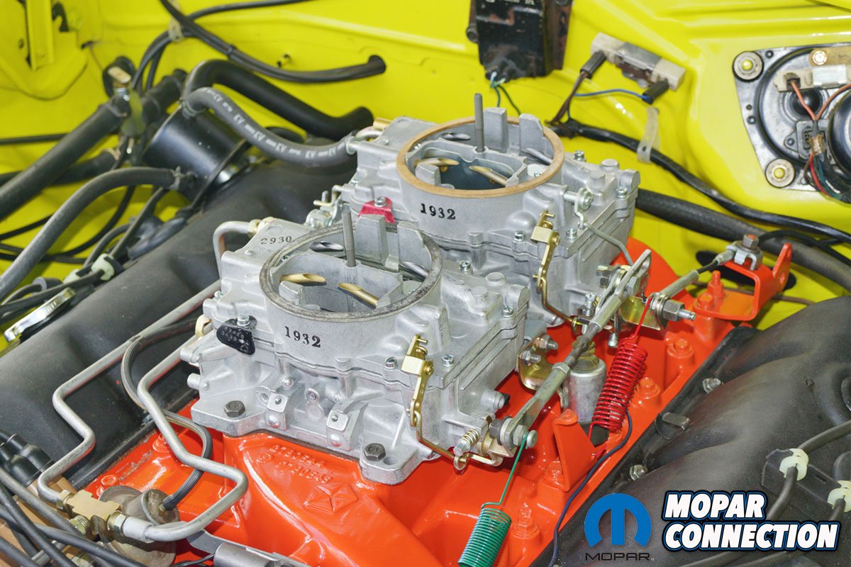 Very nice write up and an especially nice car! Concerning the carburetors and the 1970-1971 transition, here is some further clarification on that subject. While the reasons are not entirely known, as mentioned in the article, a large number (some say all) 1971 Hemi cars recieved 1970 Hemi list # carburetors. The vast majority of them were first assembled by Carter in November 1969, the month was represented by a single alphabet letter (the letter “I” was skipped as it looked too much like the number 1) for November the date code stamped on passenger side mounting foot was “L”, followed by the year 1969, represented by a “9”. When these carburetors were modified for use on a 1971 Hemi the chokes were converted from an automatic choke to a manual choke, after this “new” assembly date which took place, roughly a month after the original assembly date, an “M” was stamped over or ahead of the “L” for the new December date. The corresponding screw on metal tags were also changed to show the new assembly dates (most were dated 2499 or 2509, 249th & 250th day of 1969). There were also some new assemblies built in December which will simply have an “M” 9 for a date code of December 1969. These carburetor List numbers were 4742s (secondary for either transmission) 4745s for manual trasmission (primary) and 4746s for the automatic transmission cars.