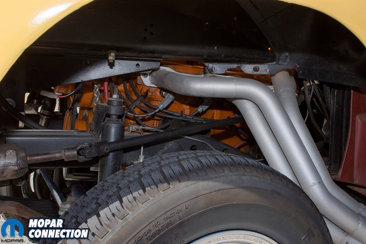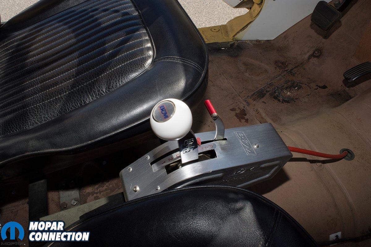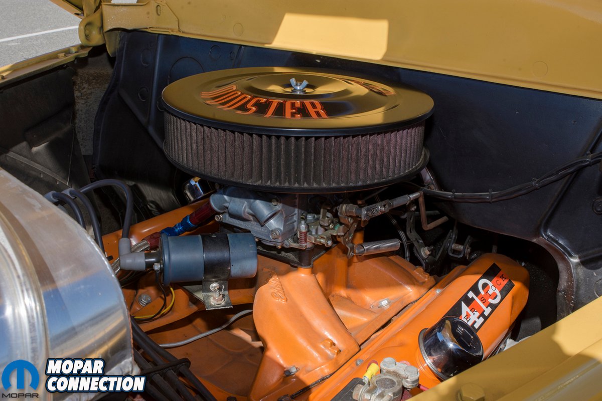 Underneath the hood is the 413 Wedge that Dewees installed. Painted on the air cleaner is the name “Orange Monster,” which is a reference to the orange color that the engine block is painted. All American V8s have a painted engine block, whether it’s from a Ford, Chevy, or even a Mopar like this one. All the rods and crankshaft are original to the 1965 Plymouth powerplant that Dewees installed.