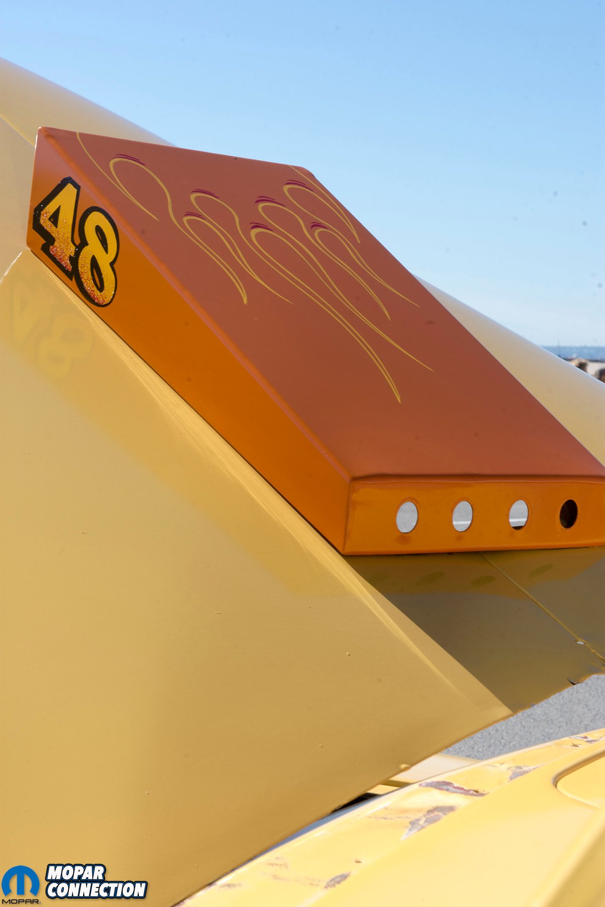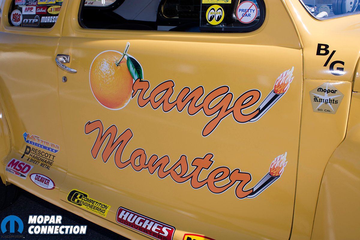 Larry and the Orange Monster can be seen at events, such as the Carls Jr. Cruise Night in Westminster, CA on Tuesdays, the Garden Grove Car Show on Historic Main Street every Friday evening with members of the Mopar Knights Car Club, and even at the Antique Nationals, held every year in May. If you get a chance to catch a glimpse of this gasser, you’re in for a real treat. The Orange Monster is one heck of a decked out ’48 Plymouth gasser.