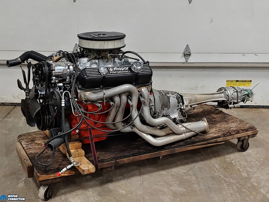 Above Left: You can see the Gear Vendors Overdrive 727 long kit installed at the back of this 440. Above Center: The 440 is ready to drop in the Mopar of your choice. Above Right: A little close up of the Gear Vendors unit at the back of the 727.