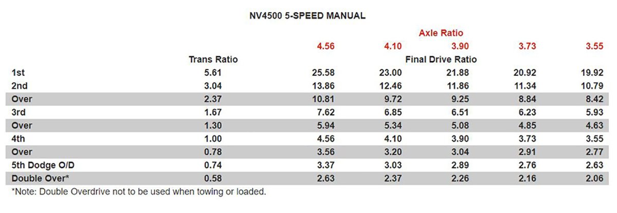 Don’t forget about manual truck applications either. There’s a reason that most big rigs come equipped with double-digit ratios from the factory. Just like in drag racing, towing is best accomplished when the engine is able to stay at or near peak torque. The hugely popular NV4500 5-speed that transmits Cummins power in so many second-generation Dodge Rams can benefit from a GV U/O installation in a couple different ways.