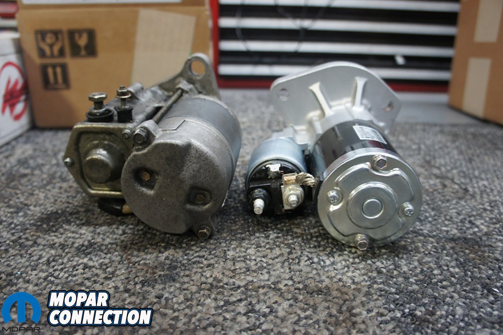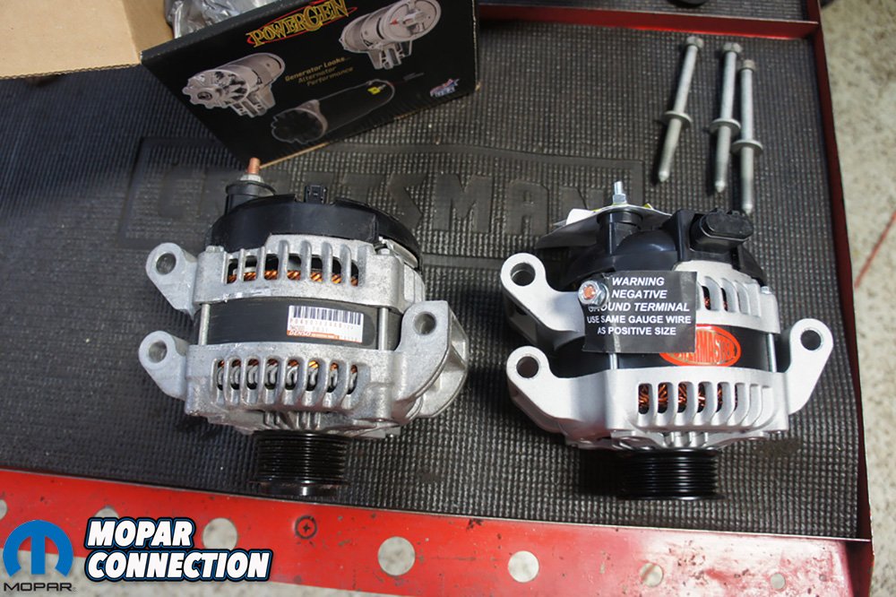 Above Left: It is difficult to see but Powermaster’s new one-wire Hemi alternator is a little smaller in diameter than stock. Above Center: Comparing the two alternators, they look identical and bolted up perfectly. Above Right: We did do a little cutting on the pinch weld of the frame to give a little bit of extra clearance.