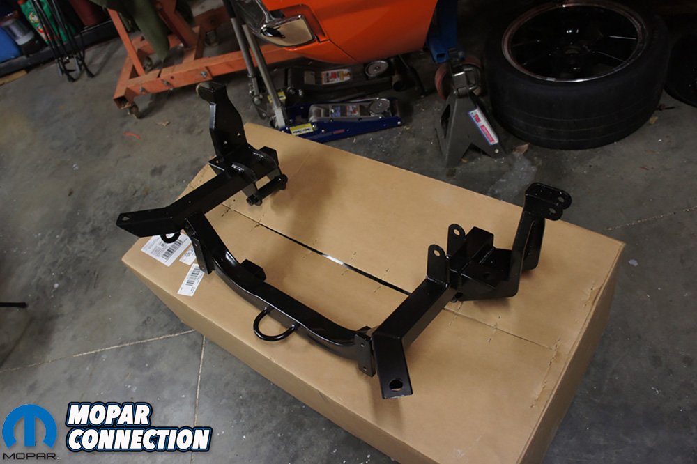 Above Left: The Reilly Motorsports AlterKtion subframe with the Gen III Hemi mounts was back and ready to install all of our old components. This unit was a little updated with tow hooks and tie down points. Above Right: You can see the new Hemi motor mounts and labeled for each side.