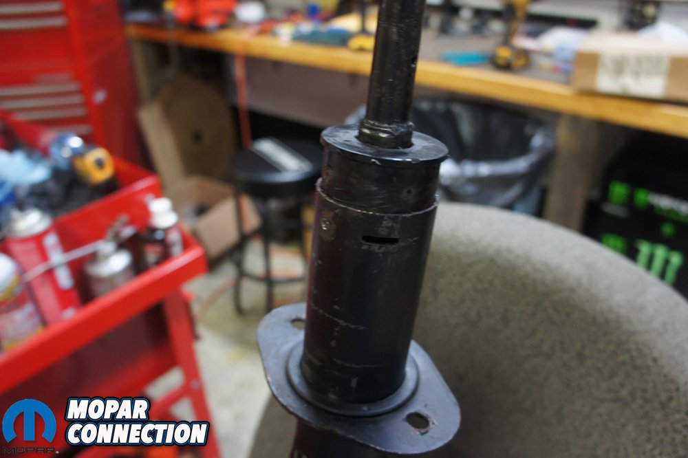 Above Left: Our original steering column hit the motor and had to shorten the tube. We are using a Reilly Motorsport plastic busing from when we initially installed the AlterKtion. Above Right: We gently secured the steering column in our Wilton combination vise. We just snugged the column without collapsing the tube.