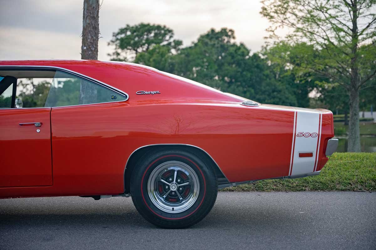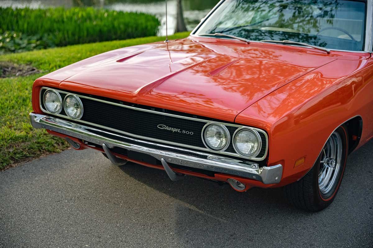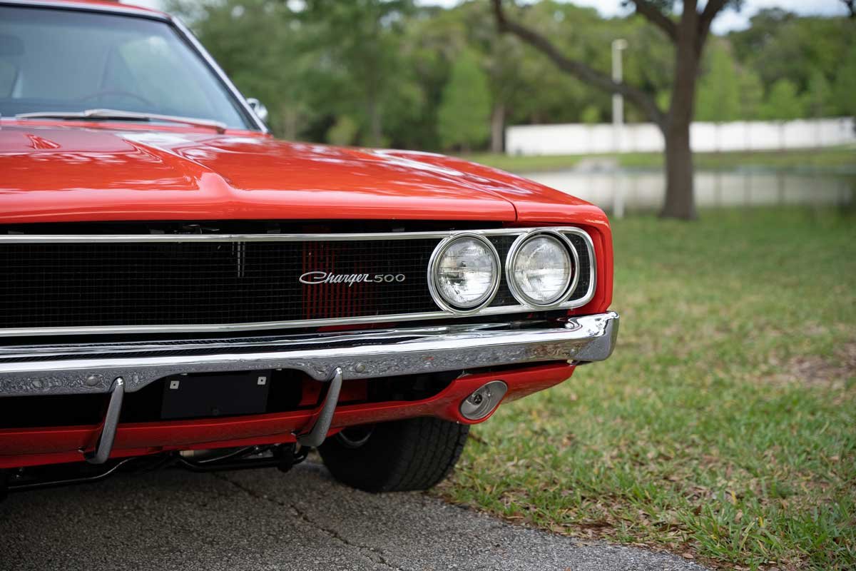In June 1968, Dodge announced the limited production Charger 500, which initially was only available with a Hemi. It was later decided a 440 would also be an option. Creative Industries handled the installation of the grille, a front spoiler, chrome A-pillar covers, and the rear window plug assembly.