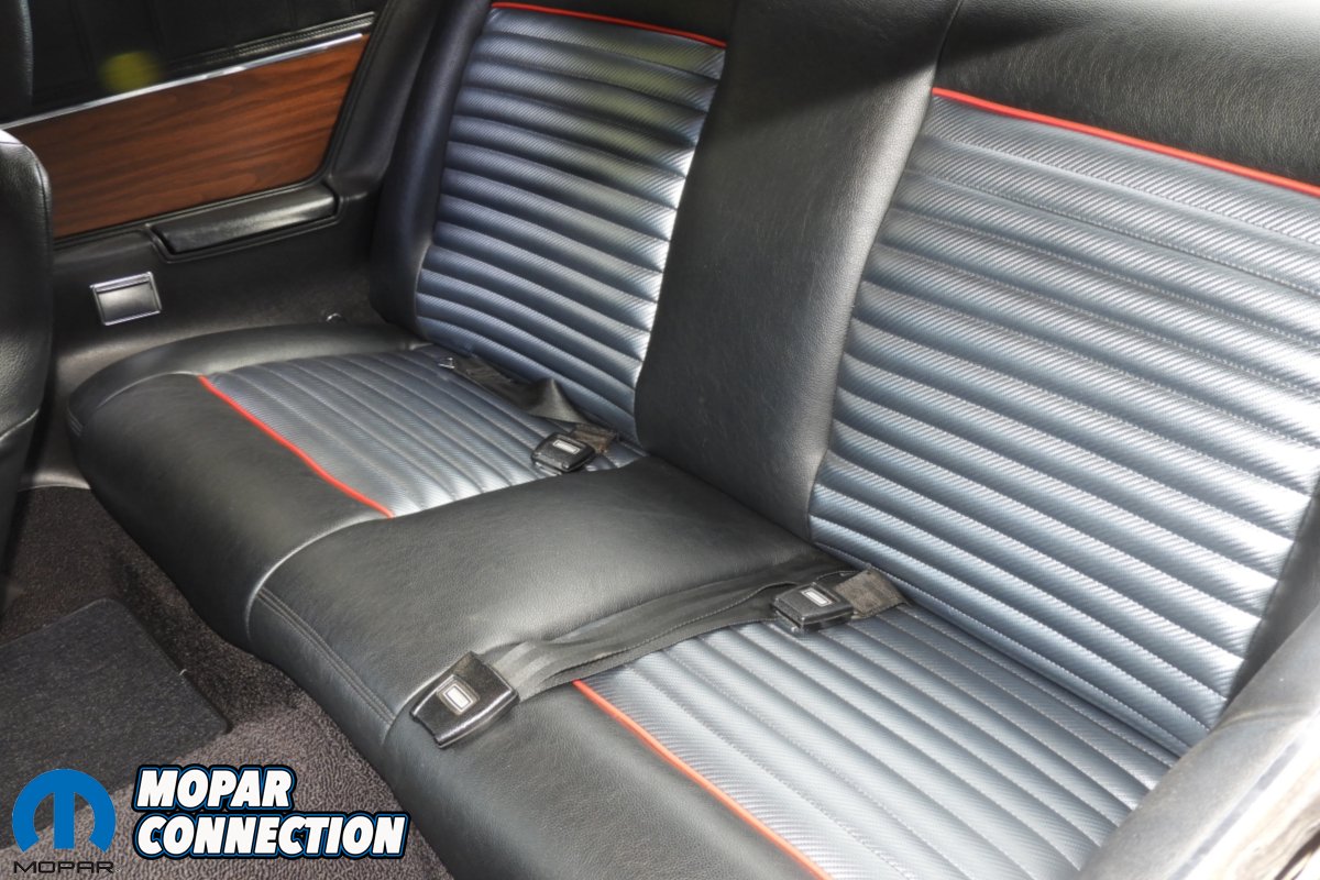 “During the Spring of 2008, miscellaneous mechanical items were addressed to get it ready for a trip to the Mopar Nationals. I had been wanting to replace the original front bench seat with bucket seats but factory bucket seats did not feel sporty enough. At the Nationals, I met with Rick Cheek of Pro/Fit Auto Interiors and we hashed out a design to install ProCar bucket seats with a custom covering in the style of the then recently released 2008 Dodge Challenger SRT8. The result was absolutely perfect and the back seat was covered to match. The dash pad and headliner still remain the original parts to this day however, the large original steering wheel was swapped out with a new leather wrapped Tuff wheel from B/E & A Restoration Parts,” shares Darrell.