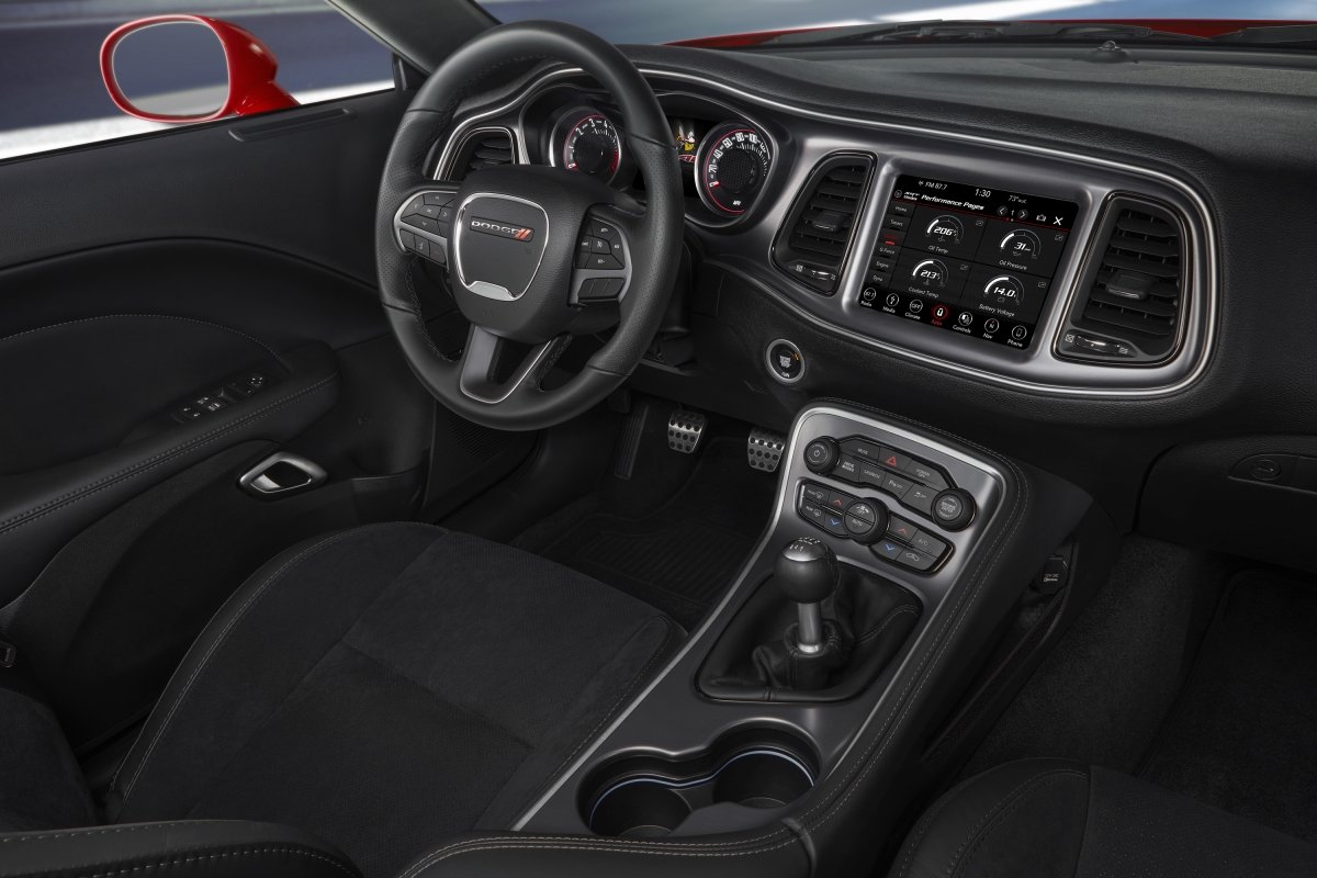 Exterior badging on the R/T Scat Pack includes new Scat Pack Bee badges and the grille has been fitted with a classic Challenger script and R/T logo. Inside, the interior remains mostly unchanged with a few small changes such as a new Dark Dub Plate finish on the instrument panel and console and new Liquid Titanium accents on the steering wheel, shifter and cluster bezels. Available on both the Challenger SRT Hellcat and R/T Scat Pack is the Rear Seat Delete Group, which allows customers to delete the rear seats, rear seat belts and add a rear cargo net.
