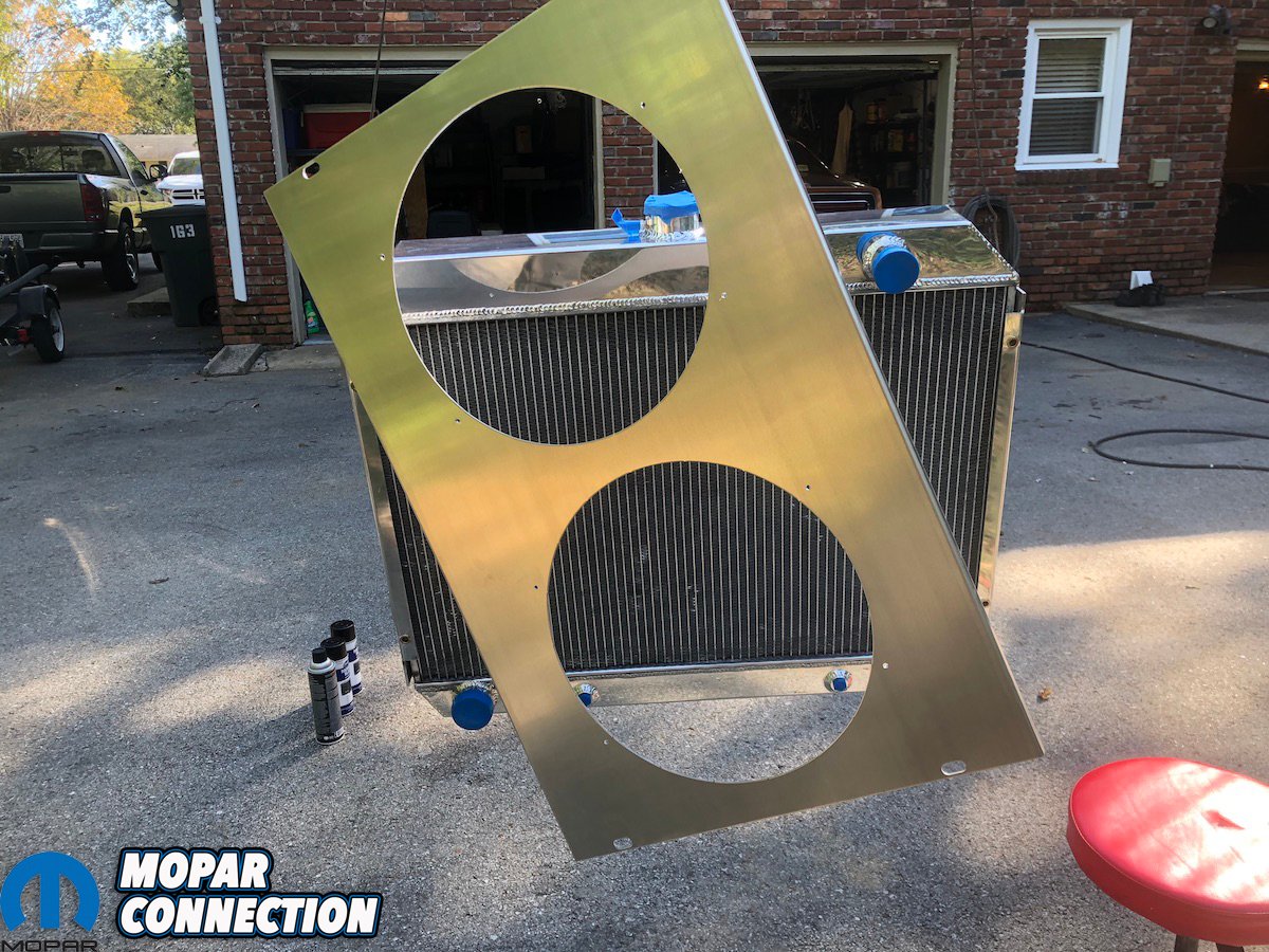 The aluminum shroud comes pre-cut and elongated slots to properly align it on the radiator itself, but the holes for the fans need to be marked and drilled. Although the polished aluminum radiator and shroud look great, it can also be a chore to keep looking great all the time. So, satisfied with the Charger’s new setup, I took it all apart for paint.