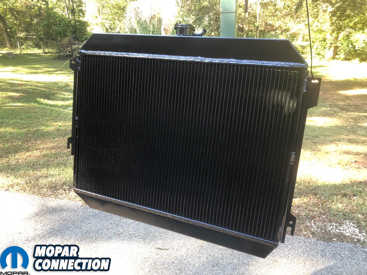 Above: Holley’s new line of Frostbite radiators come in a variety of applications, sizes and depths. Typically a 2-row radiator is rated to 600-horsepower. Considering future plans for the Charger, I opted for the biggest (4-row) that is offered.