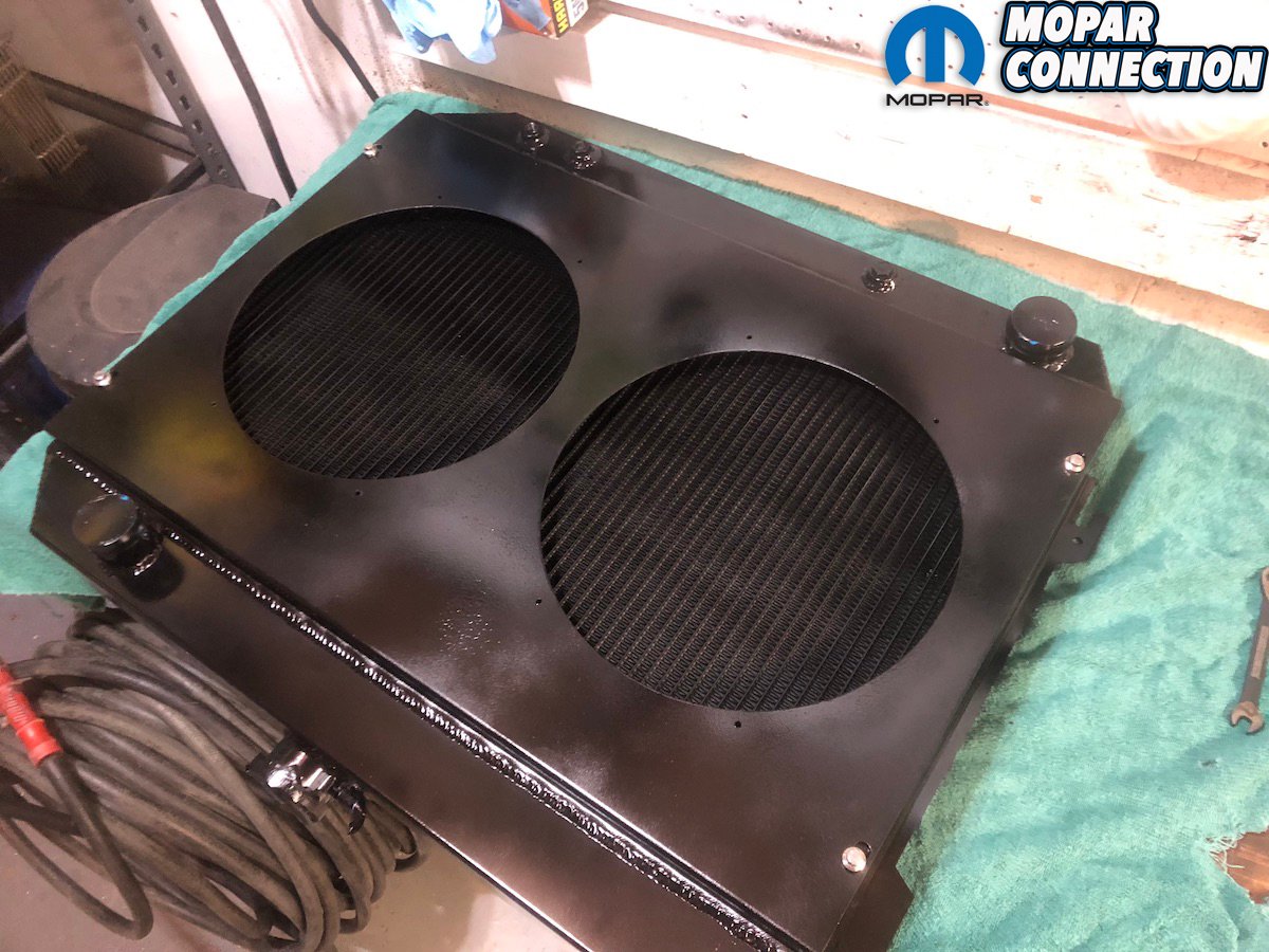 With a big 800+HP Hemi in mind for the future, I went to Holley for a replacement radiator. Holley’s new line of high performance Frostbite aluminum radiators not only weigh less than the OEM brass units, but flow faster and dissipate heat better, so it was a no-brainer. Each Frostbite radiator is 100-percent TIG welded with (brazed) seams, an aircraft-quality aluminum core, fittings, and tanks (cutting up to 30-percent in weight) and feature more cooling fins per inch for greater efficiency.