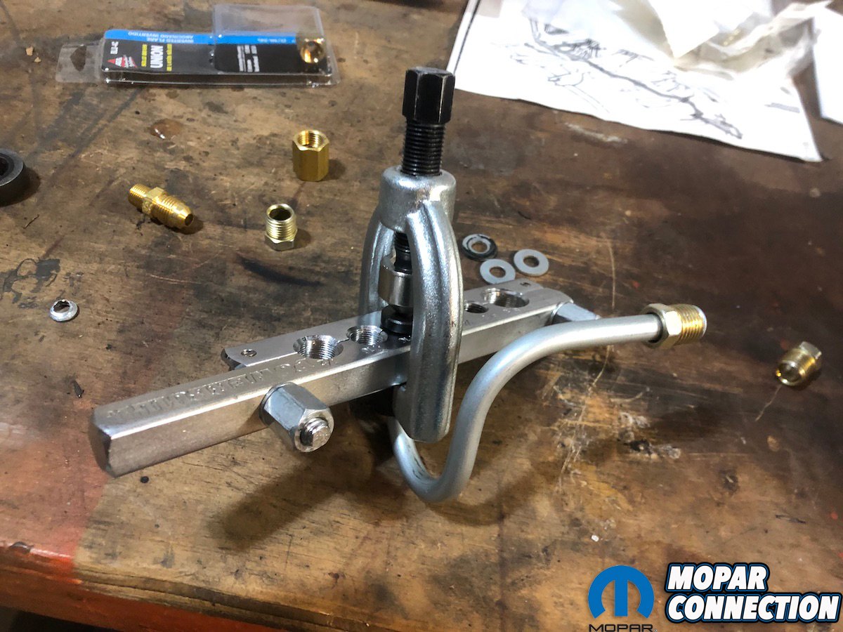 With an overall dimension of 22-1/4 x 28-7/8-inches, the down-flow style Frostbite radiator made for an easy direct swap; even factory upper and lower hoses worked. The main concern was the radiator’s added thickness since I planned on replicating the OE cooling lines. For this reason, I also ordered the Earl’s Professional Flaring Tool (with Bench Mounting Flange), the Standard Tubing Bender, a Tubing Cutter Tool and the 2-Piece Aluminum Adjustable AN Wrench Set.