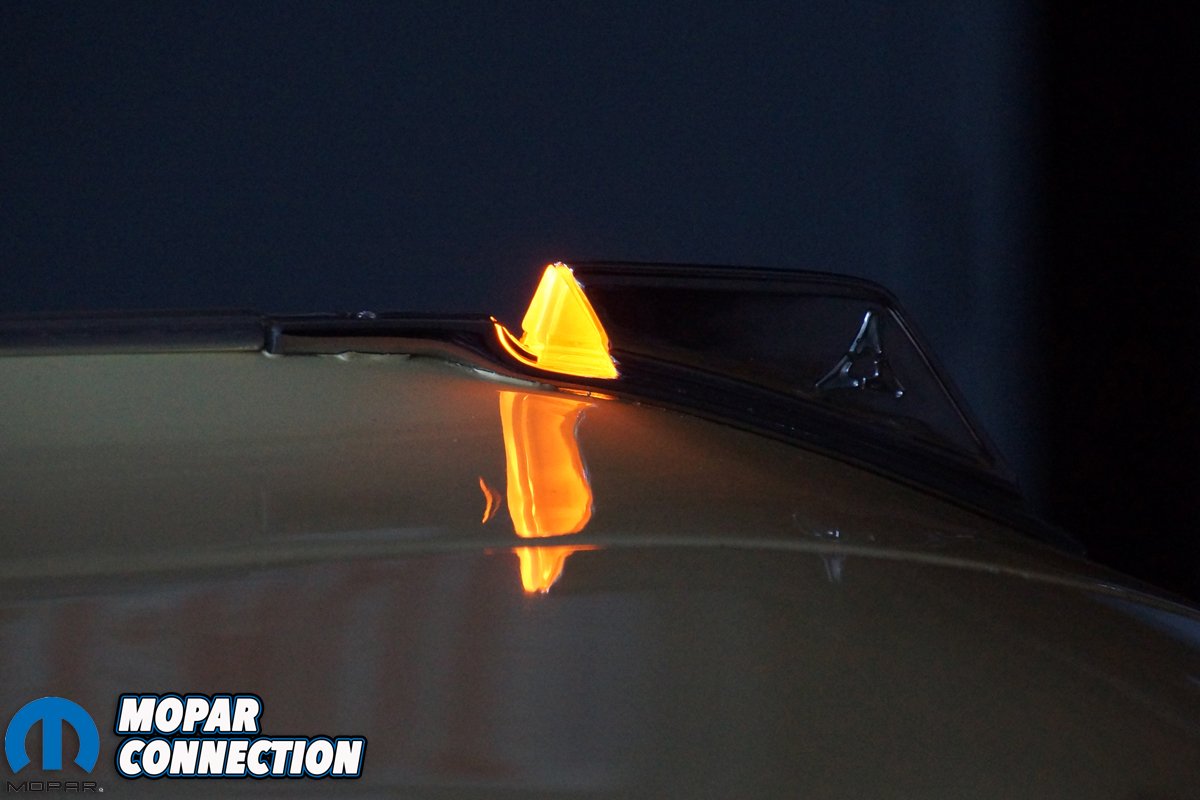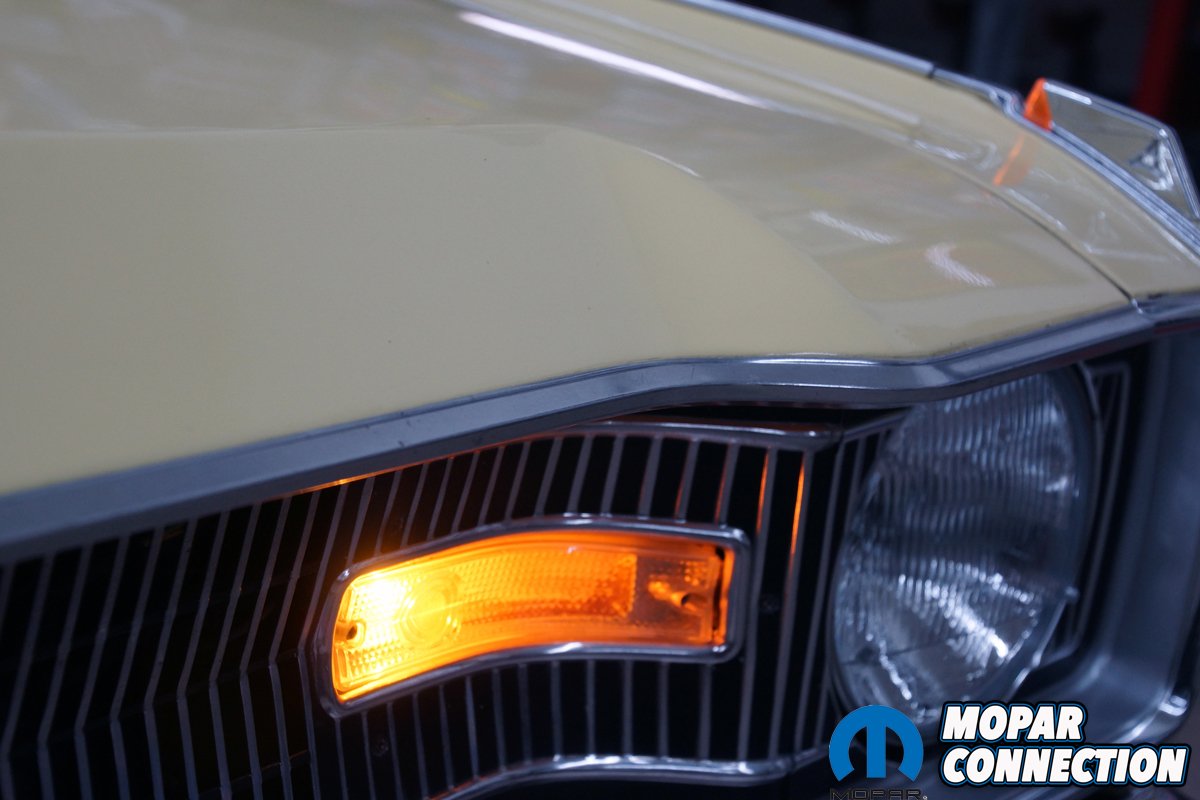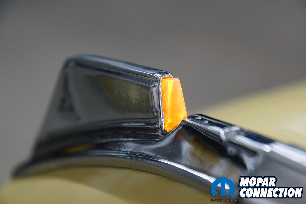 Left: The fender-mounted indicator blinks in unison with the grill-mounted blinker, but the fender-mounted indicator provides feedback to the driver, not to oncoming traffic. Right: The update of the fender blinkers took about 30 minutes to complete. Depending upon your application, the time may vary. We have also provided links (found in the last paragraph) to two charts listing the bulbs required for the ’60s to mid-’70s Mopars.