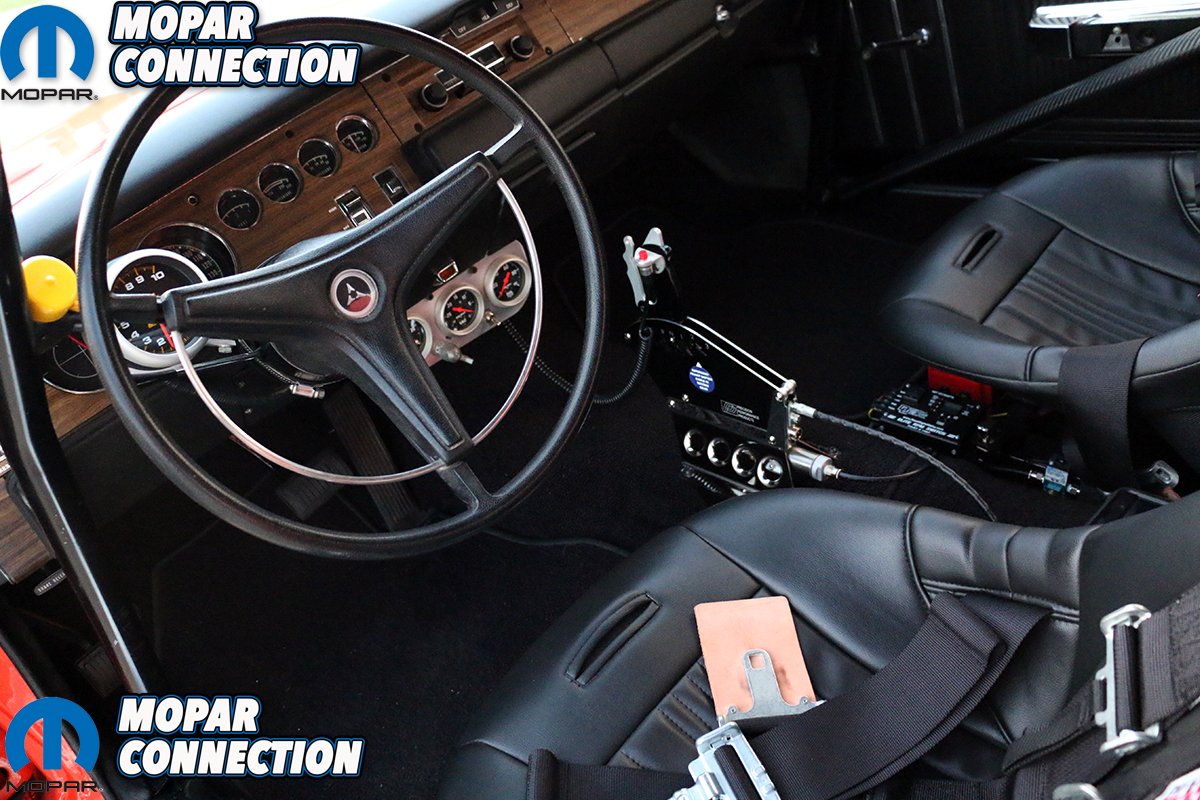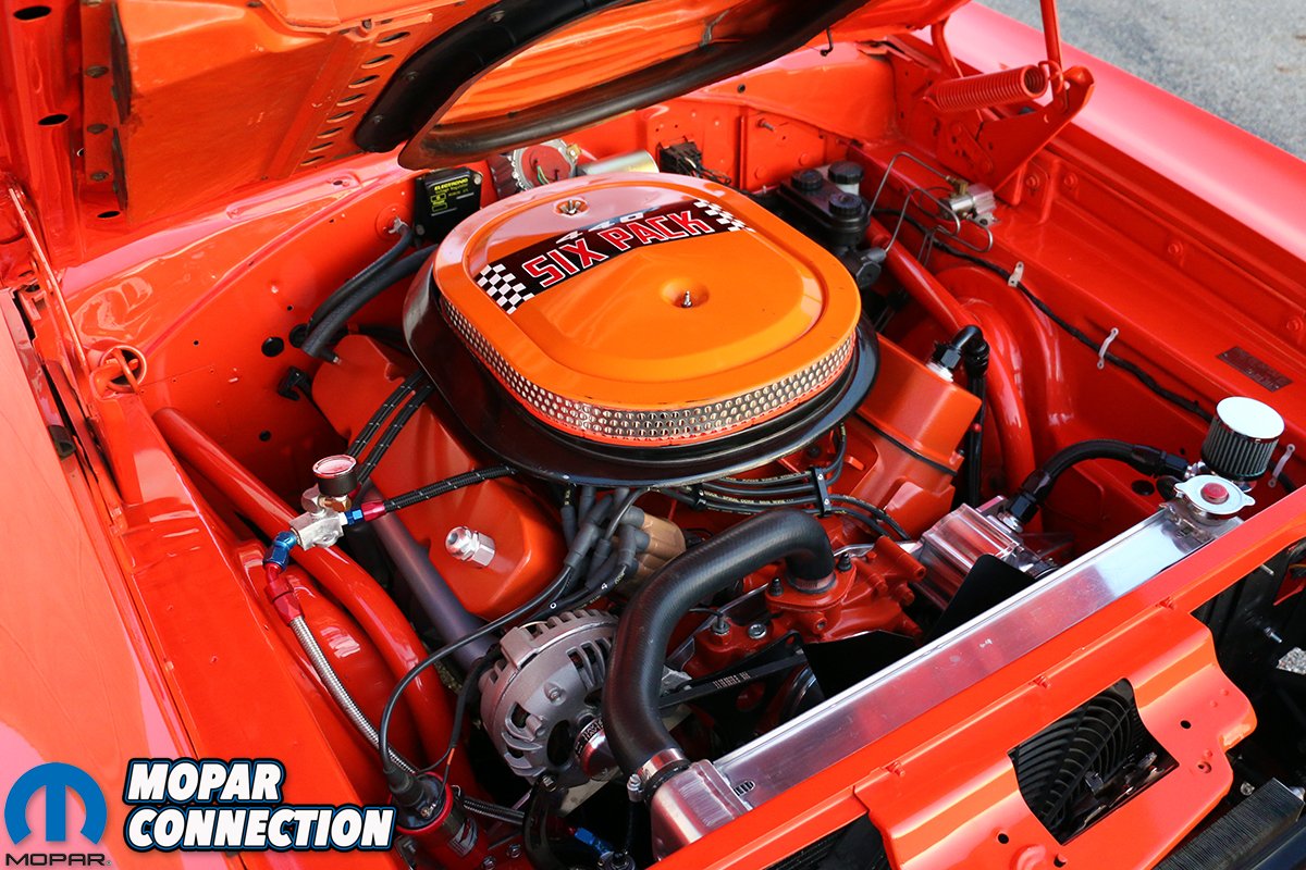 Over the years, Barry has given the car a complete refresh and made it even faster. Under the hood now sits an old motorhome-based 440 that’s been balanced, blueprinted and stroked to 507 cubic inches. Muscle Motors in Lansing, Michigan built the short block assembly. They bored it .040 over. The engine features Eagle H-beam rods, forged flat top pistons, a COMP Cams solid roller camshaft, Muscle Motors steel crankshaft, Trickflow valves, Harland Sharp roller rockers, Muscle Motors pushrods and Trickflow aluminum heads that have been CNC ported. On top of the stroker sits a factory Six-Pack setup (Edelbrock intake and three Holley 2-bbl carburetors) that has been modified. The manifold was fully ported by Hughes Engines and the carburetors have had Quick Fuel billet metering plates installed. Providing spark to the engine is done by a MSD 6AL system, a factory race-style distributor and Auto-Lite 3923 plugs. Barry has not had the engine dyno tested but says it makes around 630 horsepower.