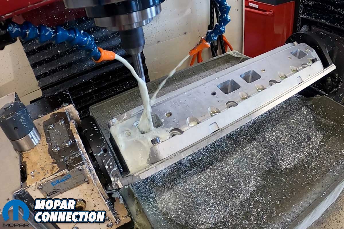 The prep and CNC work on the cylinder heads is an option from Hughes Engines (part no. 60929-S3). The heads can be purchased from Hughes or another supplier, but in either case, Hughes will perform porting that will significantly outpace the stock Edelbrock heads. The factory flow rating of the cylinder heads could support about 550 horsepower (hp), but with the Hughes CNC porting, the heads are good for 725 hp or more.