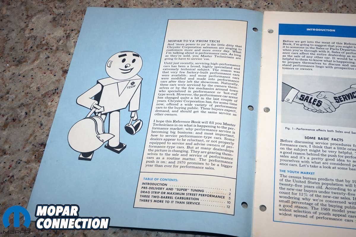 While it was customary for Chrysler to provide performance information through technical service bulletins (TSBs) with its performance-oriented devotees, it was out of character for Chrysler to put out a MTSC in late 1969 (69-12 training session) that covered super-tuning of their performance models. The Performance is the Name of the Game training covered how youth enthusiasts purchased performance cars that comprised 20% of the market and how the performance push was on for 1970.