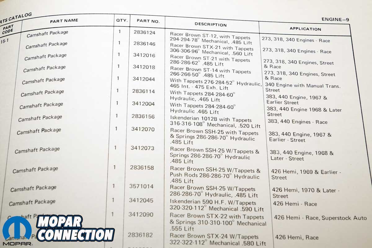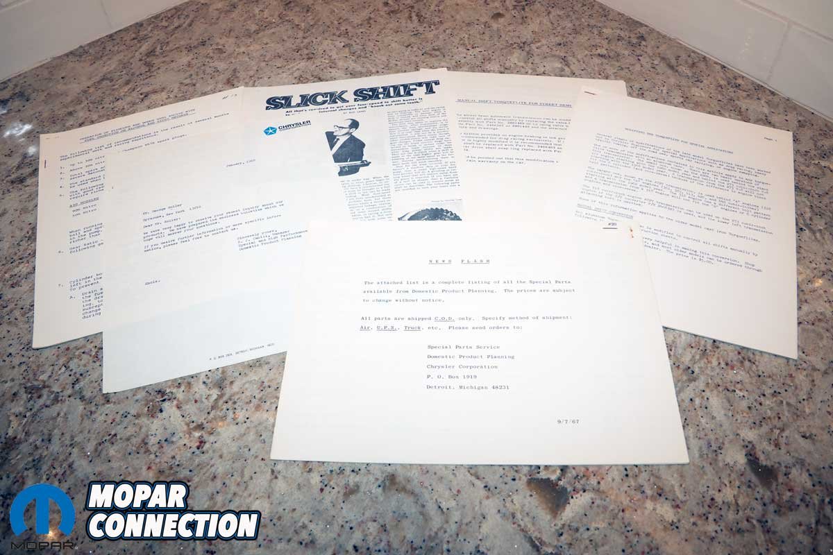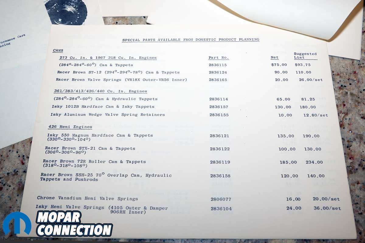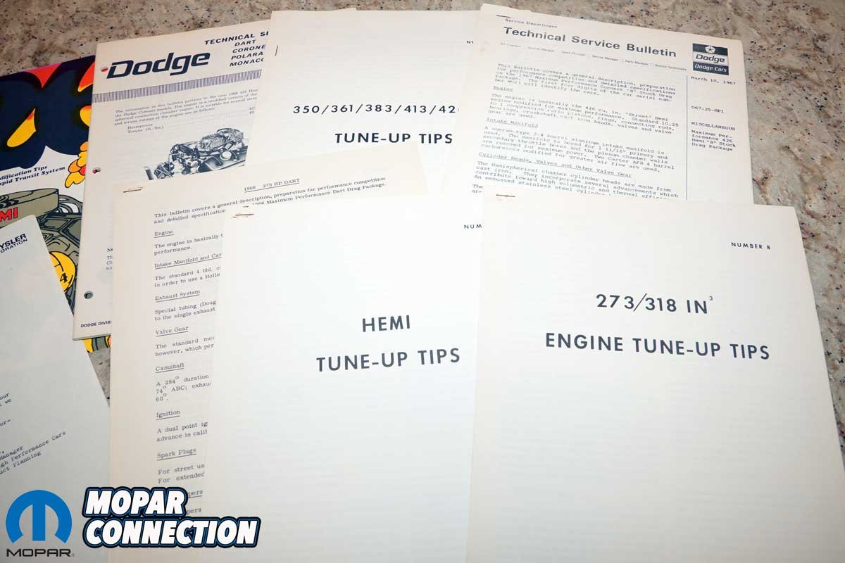Above: Chrysler always had a way to provide enthusiasts with performance-related information. Some information was in the form of technical service bulletins (TSBs) that technicians would get at the dealership. Additional information was provided directly through Chrysler’s Special and High Performance Cars Domestic Product Planning department. Those in the know could write Chrysler for more detailed information about blueprinting and super-tuning their engines.