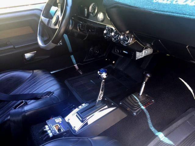 Inside the cab has been completely restored with all brand new panels, new headliner, new seats, new carpet, New B&M Quicksilver shifter, Custom built dash with all new gauges, new aftermarket stereo w/Bluetooth and two amplifiers powering 4 Kenwood speakers and 1 subwoofer. (This thing plays LOUD, crisp and clear music). Equipped with a backup camera and additional rear mounted LED light to assist in poorly lit conditions. Also comes with an externally magnet mounted CB Radio Antenna & Handheld device within the cab. The body and paint on this car are clean and straight with only minor issues (as any 45 year old car would have) but is definitely a show stopper.