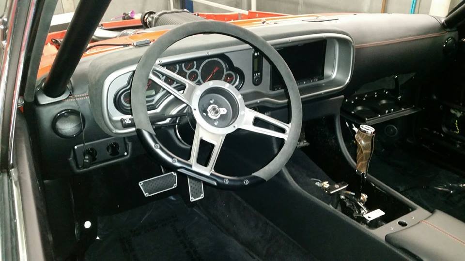 The blown Arrington Hemi is backed by a Bowler-built automatic transmission rowed by a custom one-off hand-carved woodgrain pistol grip shifter. Although the hood, fenders and front clip are absent, this ’69 Charger R/T is still an absolutely gorgeous piece of craftsmanship (seriously, click on the first hyperlink to view the photo gallery – it’s amazing). The rear lights are modern LEDs, the trailing tail lip has been extended, the exhaust outlets are billet one-offs exiting out of an extended fascia…the list goes on and on.