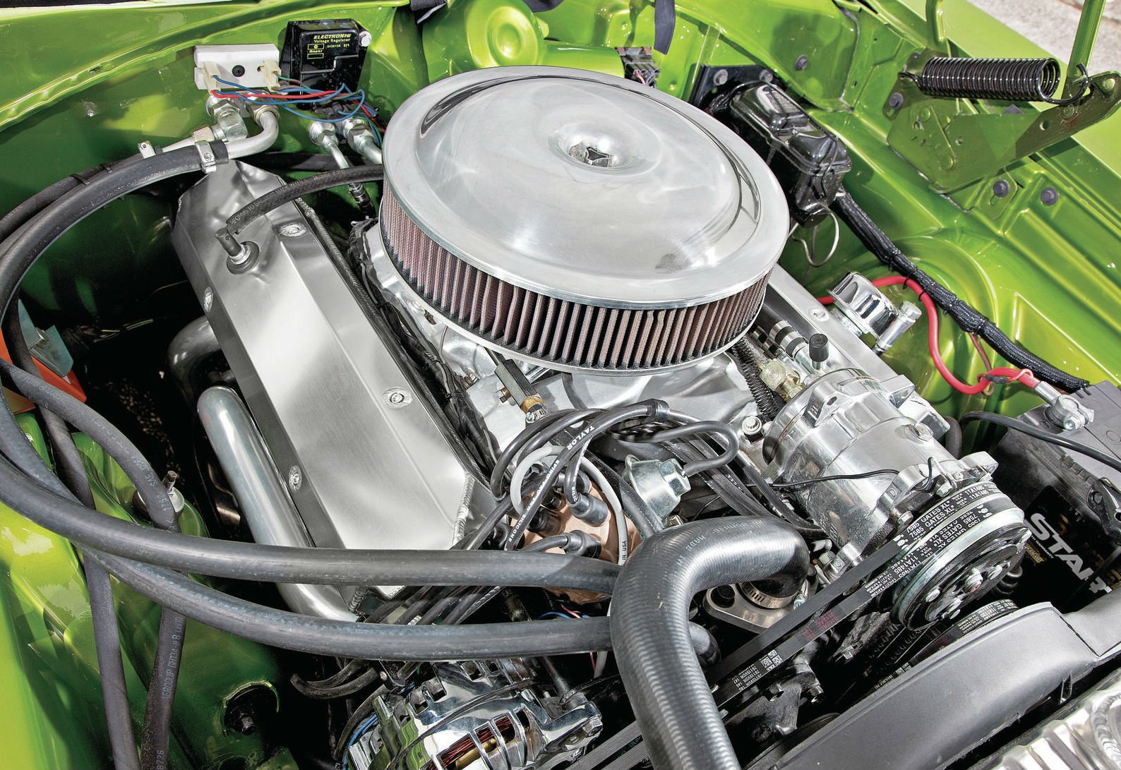 The answer is meat. Tucked deep within the Charger’s wheel wells are a set of Centerline Lazer II 18×8 up front, and massive 20×12 rollers in the rear, wrapped in Nitto Invo, 245/40ZR18s and 315/35ZR20s, respectively. Besides the widened body, it also rides on channeled suspension and a bevy of other mods that rest this big B-body down in the weeds. Thankfully, mods to the front suspension are minimal as it retains mostly rebuilt stock settings, as is with the rear suspension, with only raised spring perches as the only true custom addition.