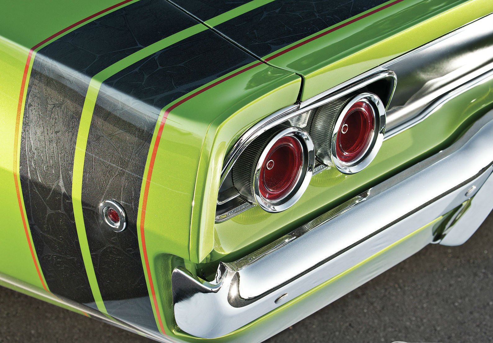 No one would argue that the second generation Dodge Chargers are anything but a big, hulking muscle car. From the razor-sharp beltline running up and over the large coke-bottle shoulders to the pinched joint, and arching up and over the broad fenders, the Charger was anything but a svelte little machine. So why would Muscle Rod Shop of San Antonio, Texas feel the need to widen their “SlamCharger” anymore?