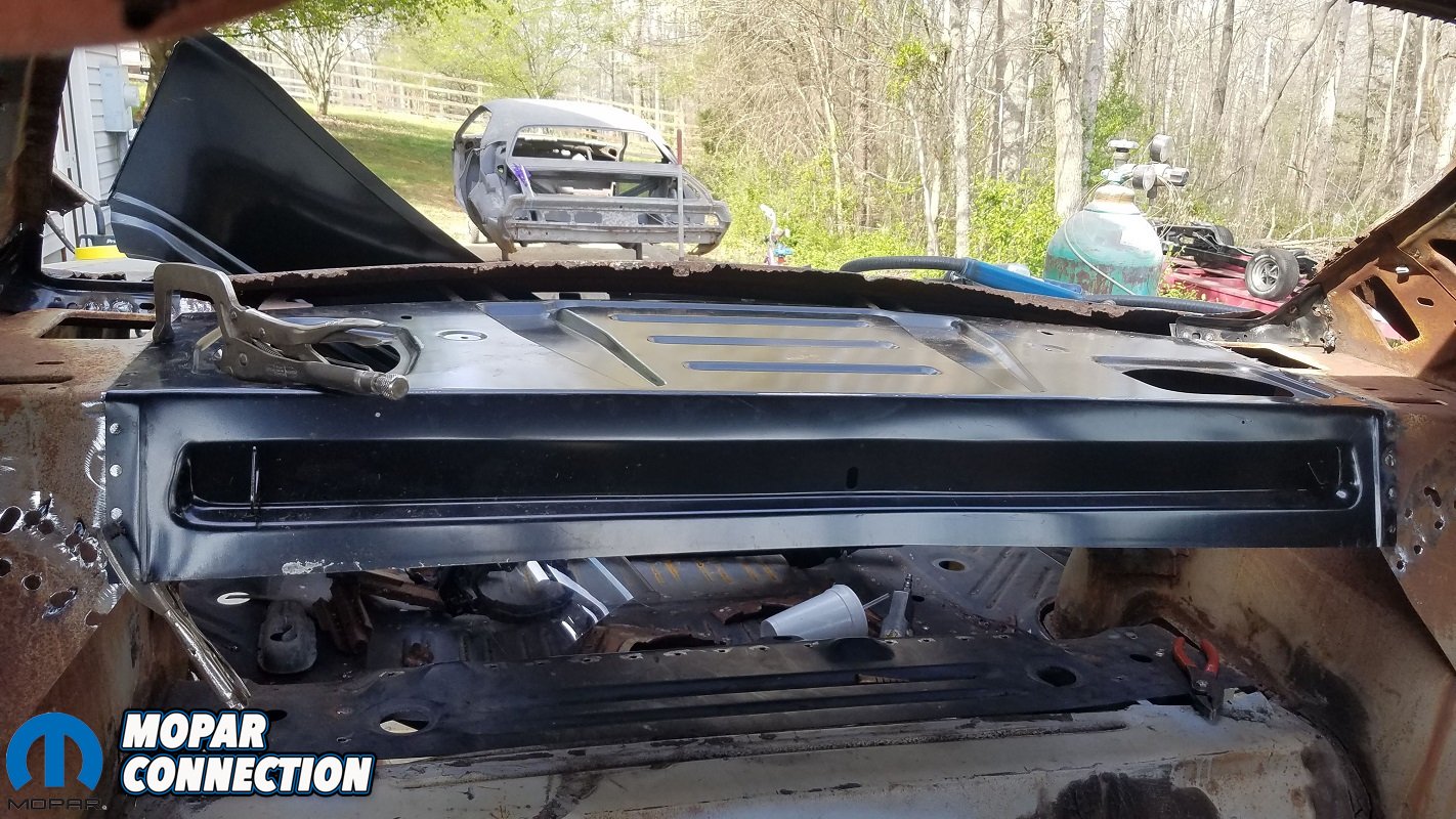With those out of the way, the final component needed to tie the back half of the car together was a tail panel. Because the 1970 Coronet body style is a one-year-only model, several parts like this tail panel have never been available in aftermarket form. Therefore, restorers’ only options are to fix existing pieces or find cut-off sections from other cars.