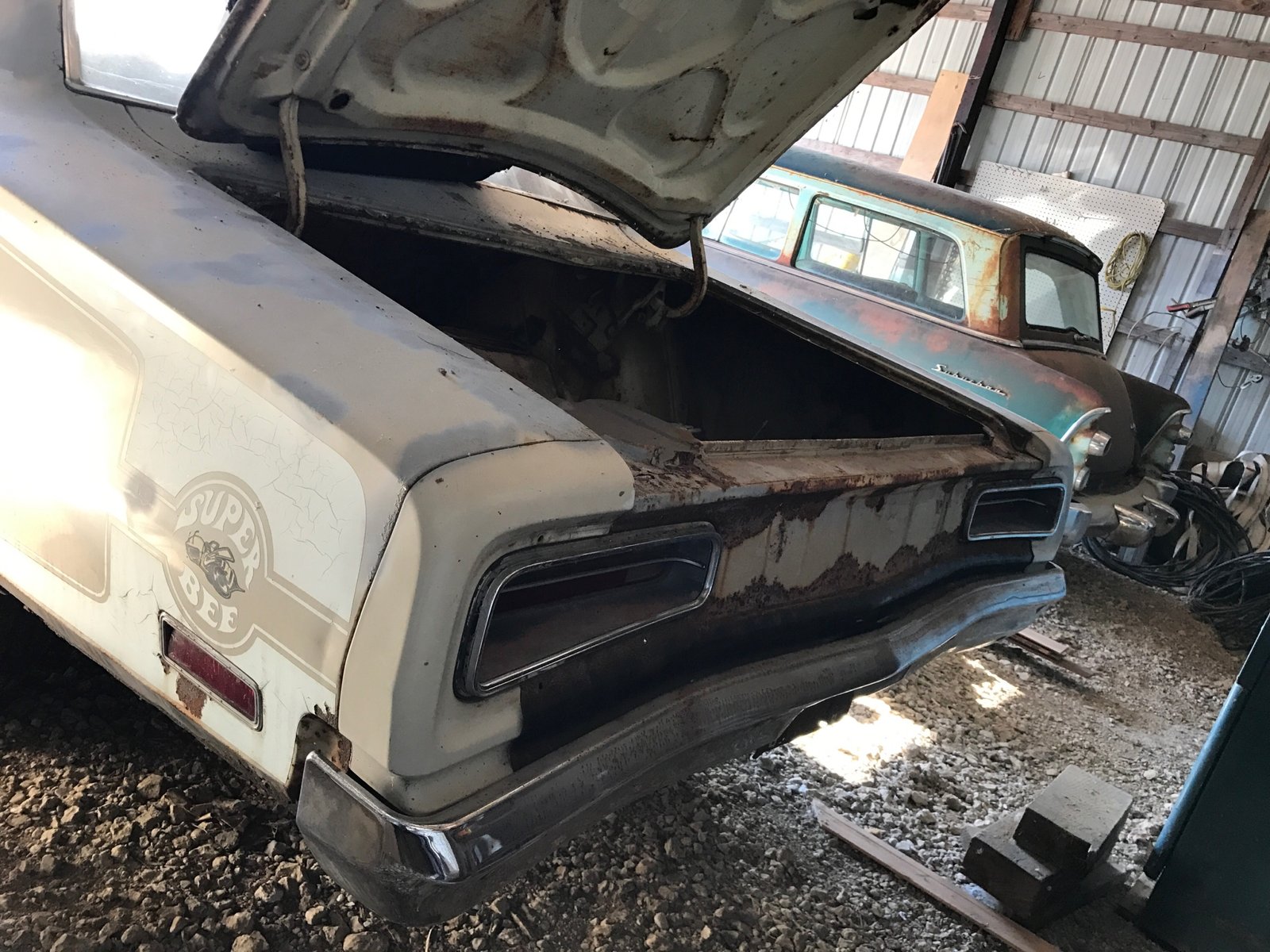 But that was before I got my hands on the Super Bee and began peeling back the layers to find what was lurking beneath its deceptively “complete” exterior. Gratefully, the ‘Bee was as complete as it was, saving me the trouble of finding it’s more unique features like its dual wrap-around front bumpers. Prior to picking up the car, I was also assured that the frame rails and rocker panels were “solid” – but we both know that term is up for interpretation. The hood was complete scrap; the skin had completely separated from the underside bracing. It flopped and clapped the whole way back to Tennessee.