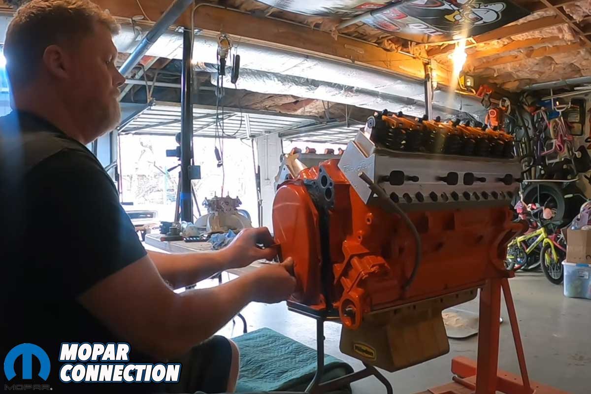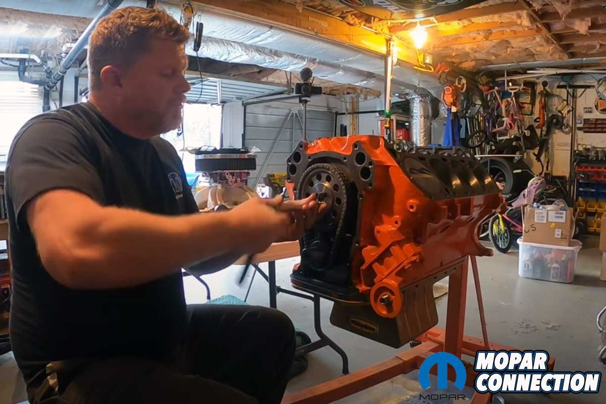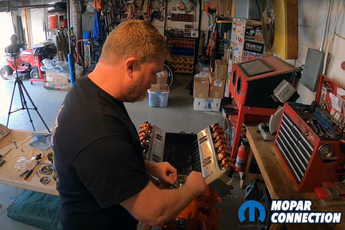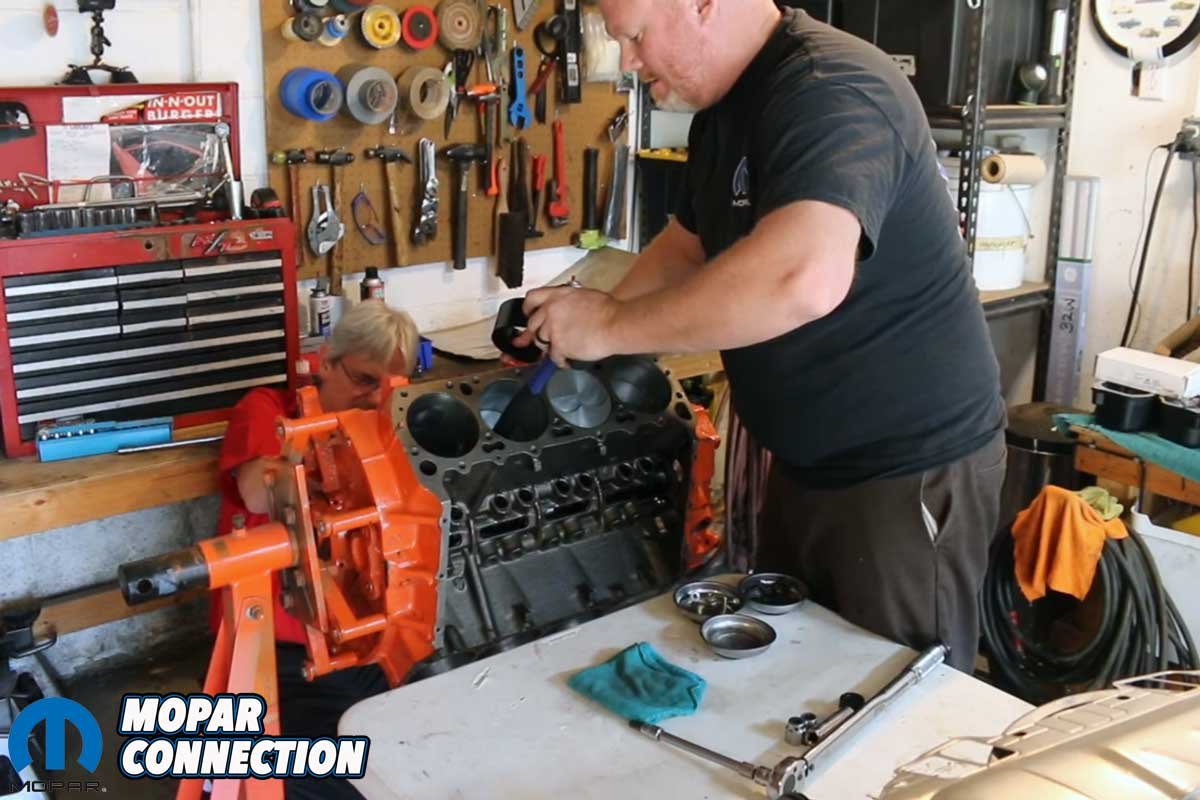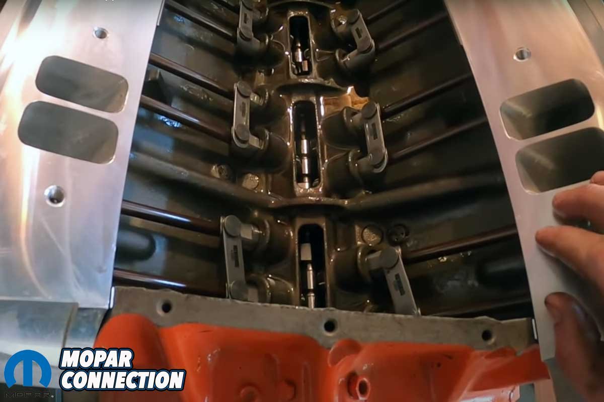 When the block returned from the machine shop, the reassembly started (again). Although the camshaft was already in the block, we pulled it out slightly to lubricate the journals. Once lubricated, we reinstalled the camshaft. We placed our K1 Technologies 4.250-inch stroke crankshaft (8-bolt Hemi flange) on the block’s mains. A set of Clevite bearings supported the crankshaft, and the SD Concepts billet main caps secured everything in place.