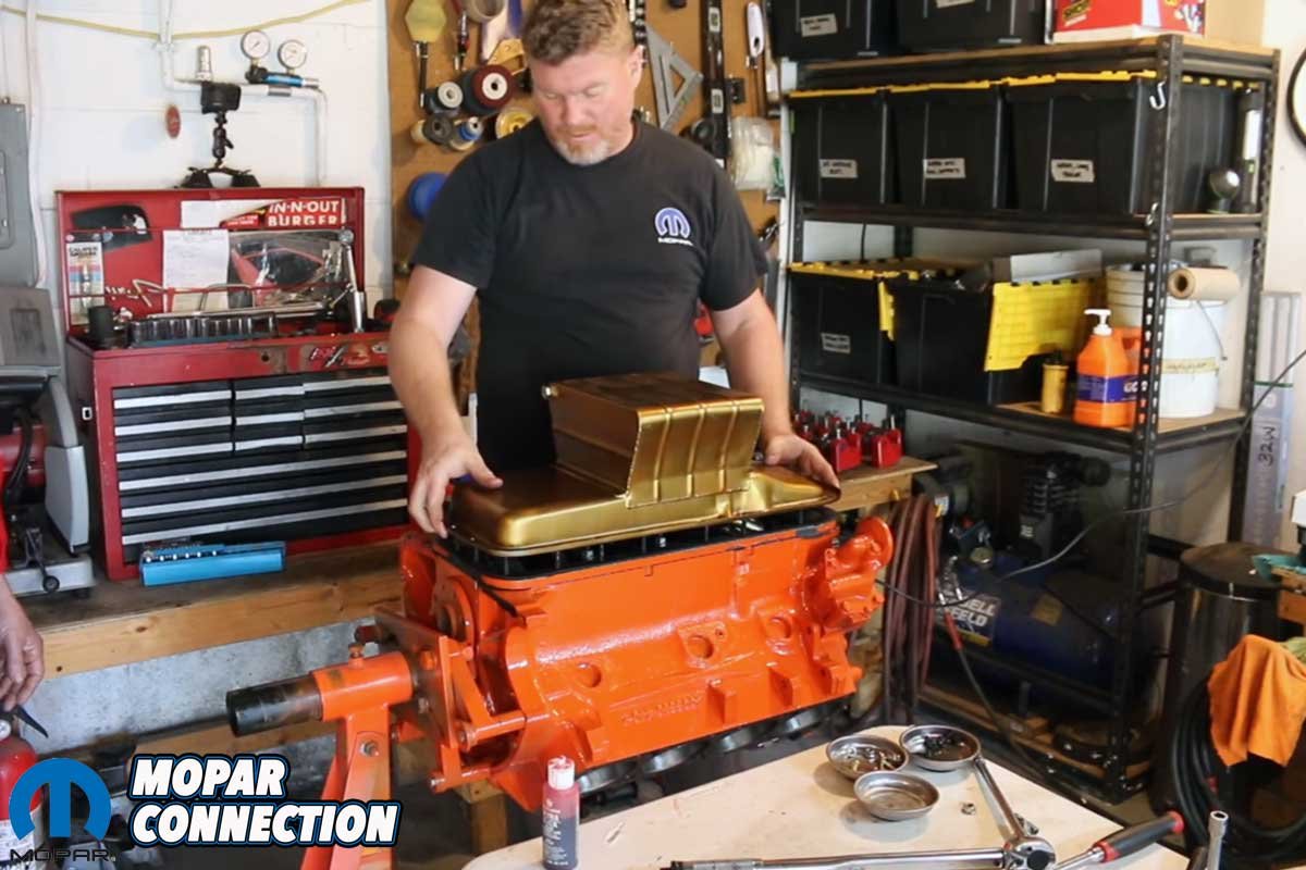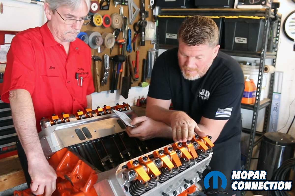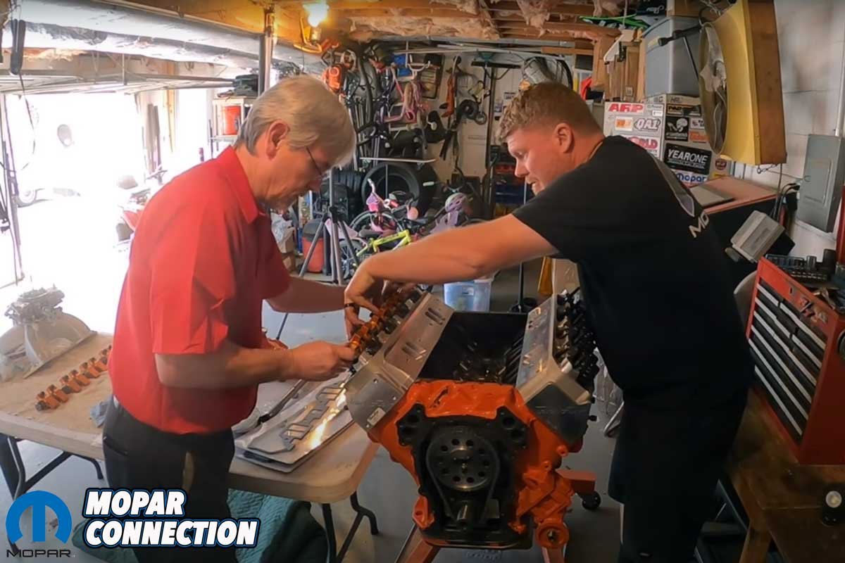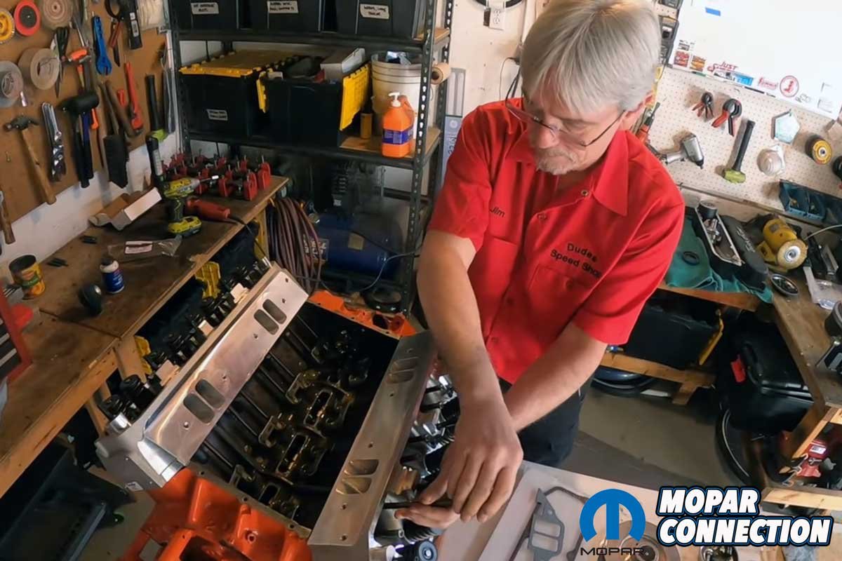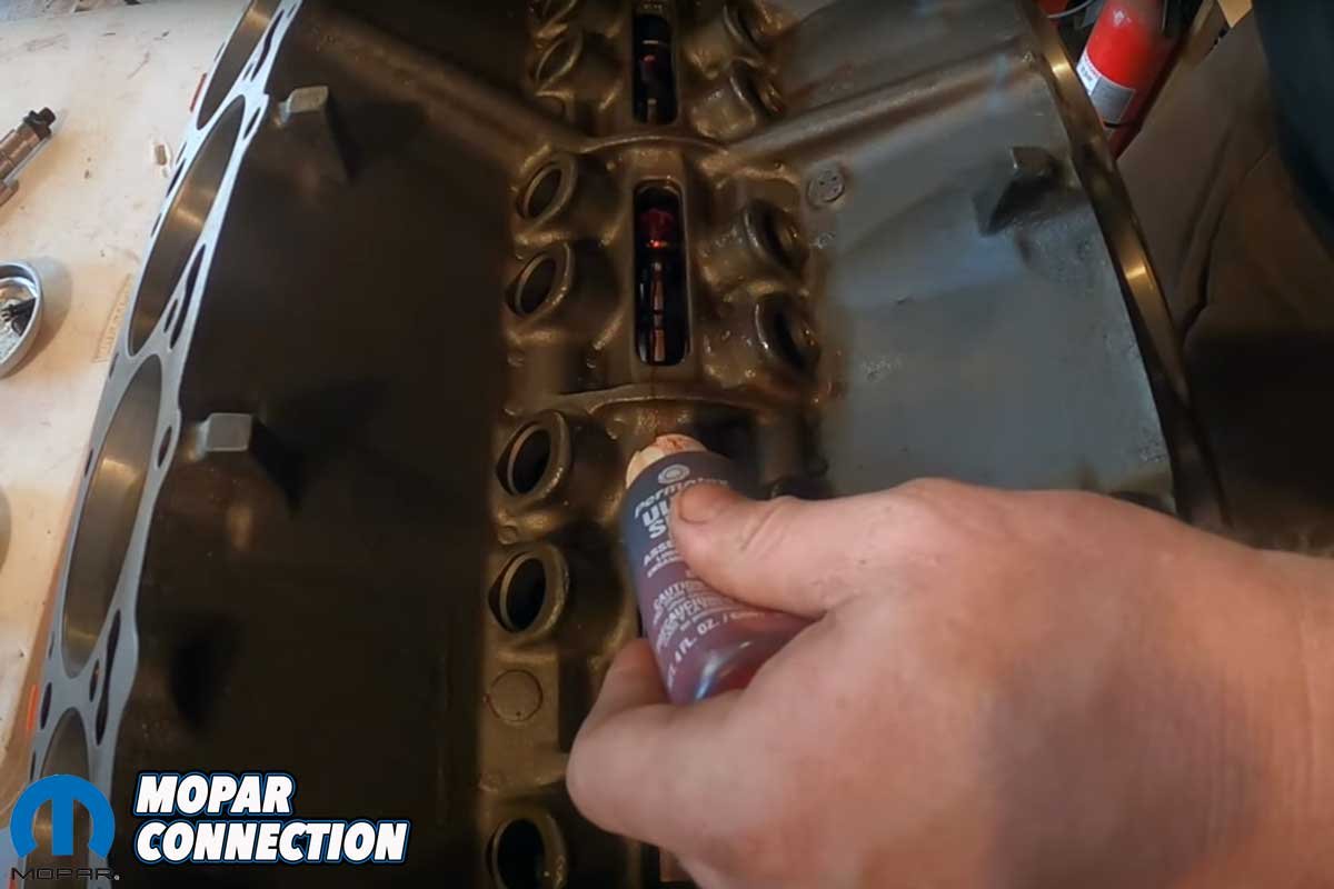 When the block returned from the machine shop, the reassembly started (again). Although the camshaft was already in the block, we pulled it out slightly to lubricate the journals. Once lubricated, we reinstalled the camshaft. We placed our K1 Technologies 4.250-inch stroke crankshaft (8-bolt Hemi flange) on the block’s mains. A set of Clevite bearings supported the crankshaft, and the SD Concepts billet main caps secured everything in place.