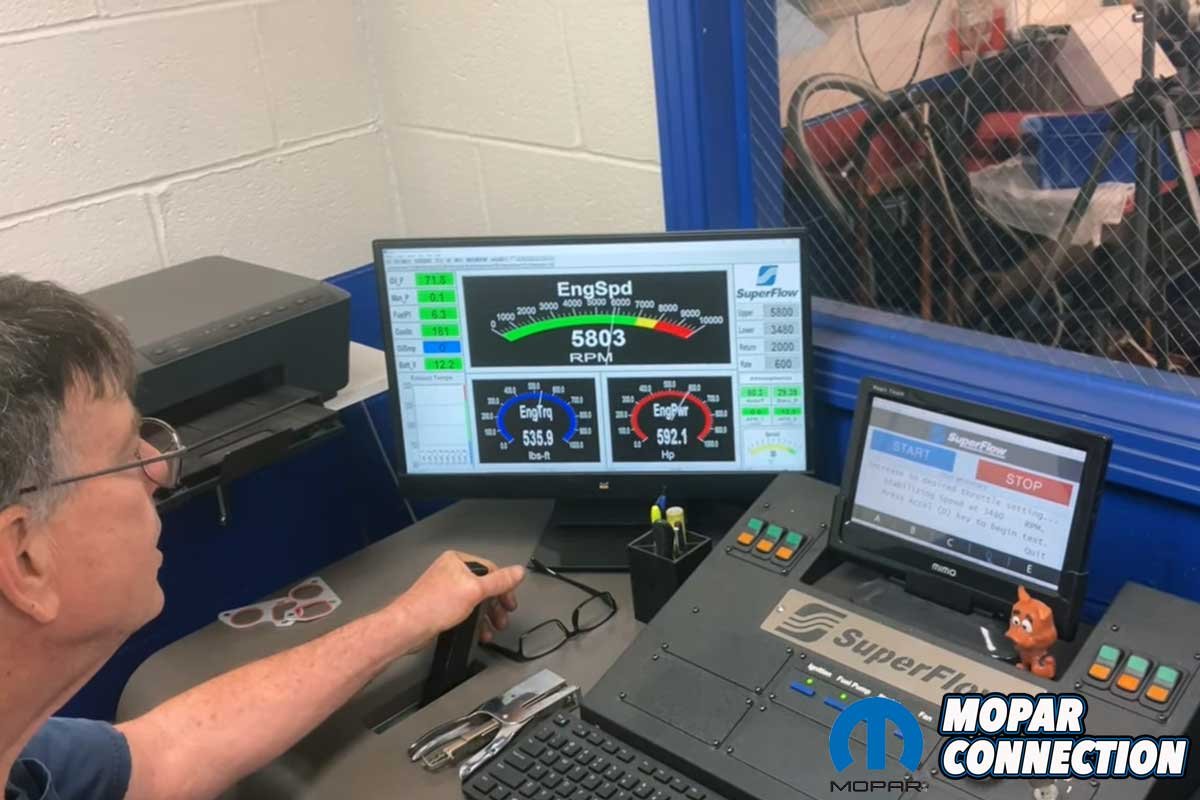 Running on 93-octane fuel we purchased at the corner fuel station and based on the parts in the 505, our educated guess was horsepower would fall in the 600 to 625 range. With 38° of total ignition timing dialed in, the stroker wedge was run from 3500 to 5800 rpm. The results were nothing short of impressive. Right out of the gate, the big wedge made 620 horsepower at 5600 rpm and 647.6 lb-ft of torque at 4300 rpm, highlighting the sheer power of the high-performance wedge.
