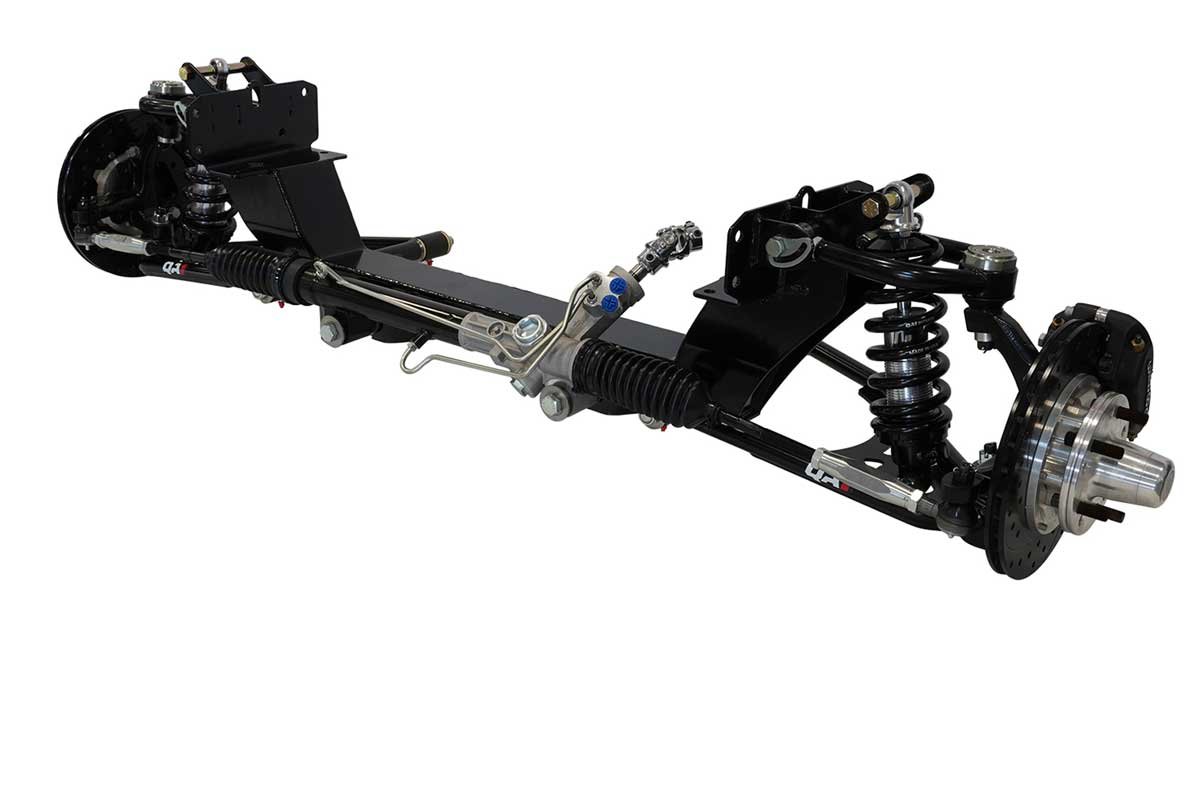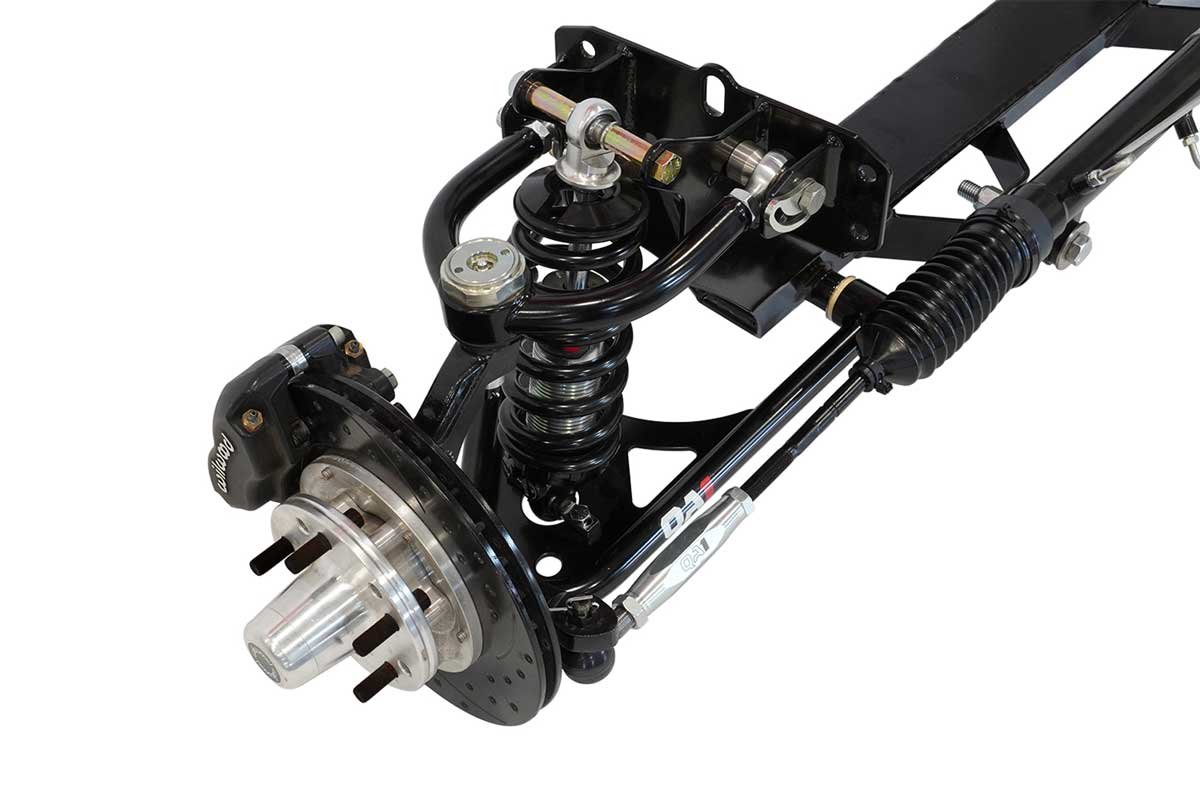 The QA1 IFS has two choices for shocks. The first option is single-adjustable shock valving with one provision to tune compression and rebound simultaneously, sufficient for street use. The second option is the double-adjustable shock valving, which provides increased tunability to locate the ideal ride quality and outstanding performance of the IFS. The coil-over suspension is a 100% bolt-in design that does not require welding or cutting, and the system is made in the USA.