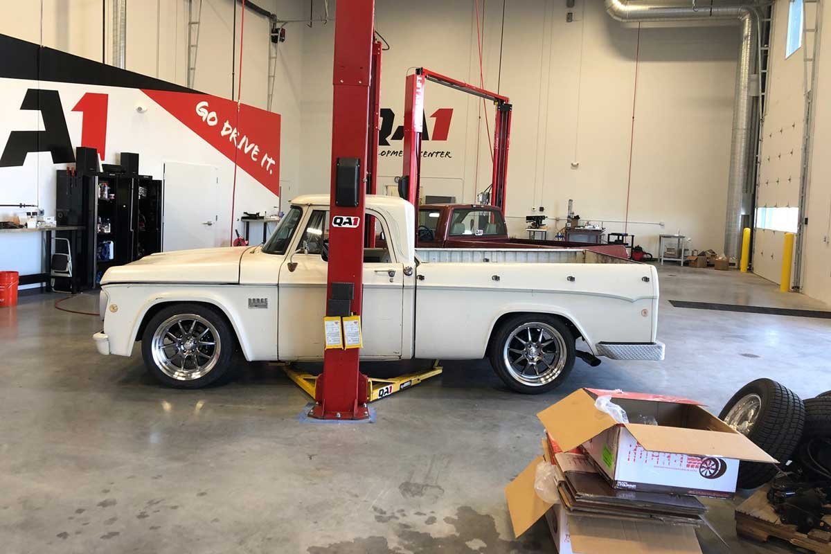 QA1 needed to find a Dodge truck to put its technology on display. Luckily, a clean-looking 1969 Dodge D100 was located in Northern California. It had been dutifully hauling barrels of fermented grapes for over fifty years at a local winery. Fortunately, the pickup remained in a factory stock condition for its entire time of service. QA1 acquired the truck and transported it to the tech center in Lakeville, Minnesota.