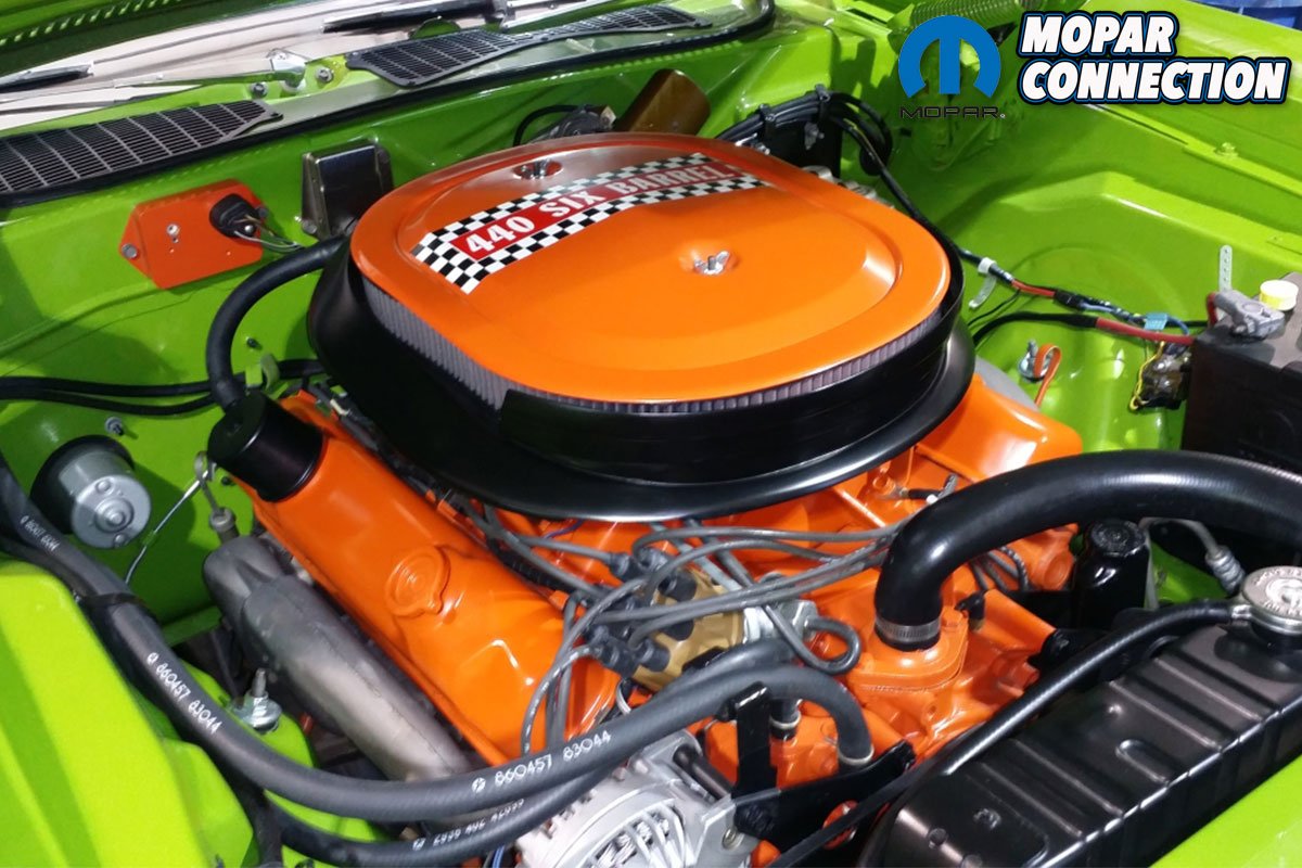 Over the next three years, Sharma alongside family and friends worked hard tackling the body and paint with endless hours of wire wheeling and block sanding. When it came time for paint, she was stuck between Petty Blue and Sassy Grass Green. Either would be complimented by a 440 hockey stripe that would match the 440 that was going under the hood as Sharma had taken the original 318 out a number of years prior and installed it into her oldest son’s 1974 Duster that he still has today. She decided to go with Sassy Grass Green and the new shiny paint was flawlessly laid down by a good friend of hers. It would take the following nine months to re-assemble the car.